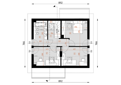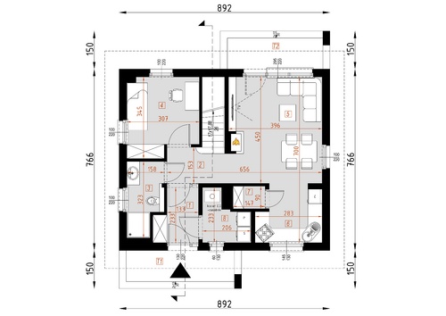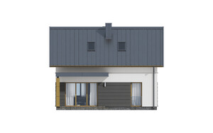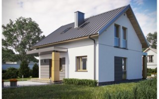 Dom mieszkalny jednorodzinny w szkielecie drewnianym. Idealny dla 4-5-osobowej rodziny.Może również pełnić funkcję domku letniskowego. Prosta bryła budynku oraz nieskomplikowana konstrukcja wpływają na niższe koszty budowy. Bardzo funkcjonalny podział pomieszczeń z oddzielną strefą techniczną, strefą dzienną na parterze i nocną na poddaszu.