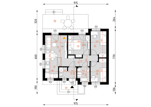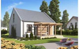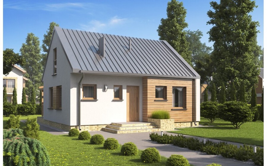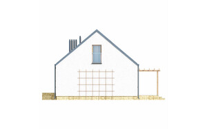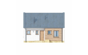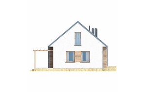 Materiały: Ściany zewnętrzne: drewniane z ociepleniem. strop: dźwigar dachowy konstrukcja dachu: drewniany: dźwigar dachowy pokrycie dachu: blachodachówka elewacja: tynk cienkowarstwowy, na fragmentach ścian deski. ogrzewanie - piec gazowy EP70 kWh/m2.rok Projekt zgodny z Wt2021 wentylacja grawitacyjna