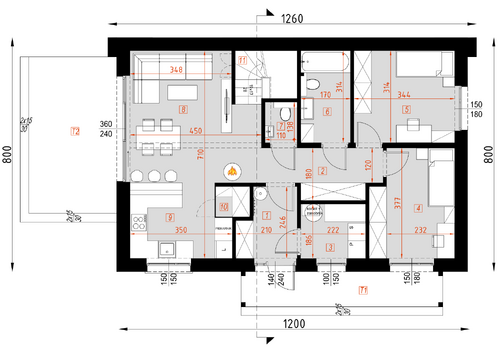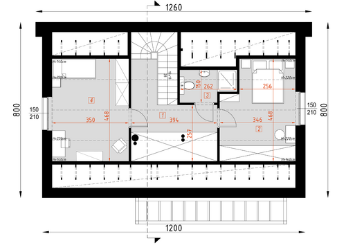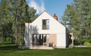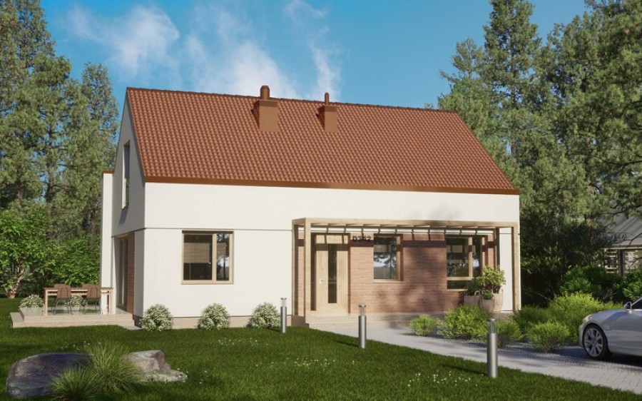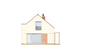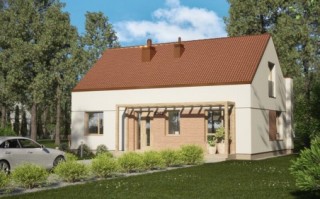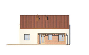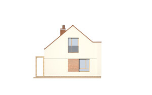 Nowoczesny dom parterowy dla rodziny. Parter składa się z wiatrołapu, pokoju dziennego ,dwóch pokoi sypialnych, kuchni, łazienki, toalety, pomieszczenia technicznego. Na poddaszu znajdują się dwa pokoje i łazienka. Budynek może zostać usytuowany w ostrej granicy lub zostać zbliźniaczony Powierzchnia dachu: 107,39m2 Powierzchnia stropodachu: 13,54m2