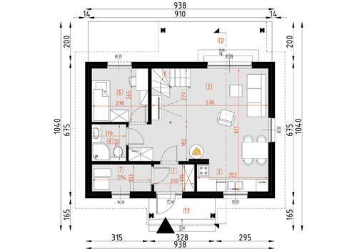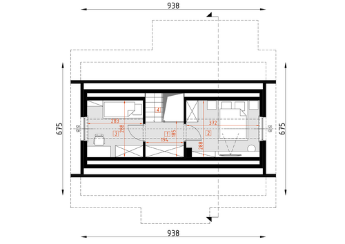 Dom mieszkalny jednorodzinny. Na parterze znajdują się jedna sypialnia, pokój dzienny z aneksem kuchennym, łazienka i przedsionek, na poddaszu znajdują się dwa pokoje.