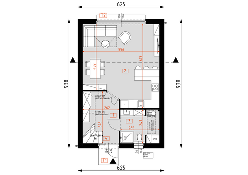 2 salon z aneksem kuchennym