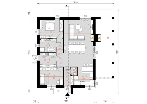 Budynek w konstrukcji murowanej jest prosty i oszczędny w formie, co sprzyja pozytywnym doznaniom estetycznym, a także zapewnia harmonijne wykończenie całości. Dzięki prostej bryle funkcjonalnie wykorzystana została dostępna przestrzeń. Pomieszczenia zaprojektowano w taki sposób, by maksymalnie wykorzystać przestrzeń.