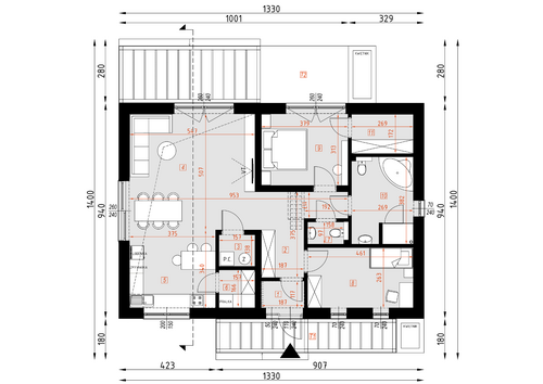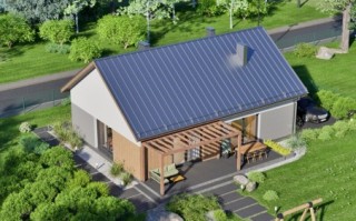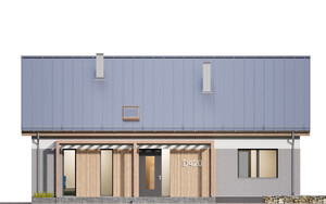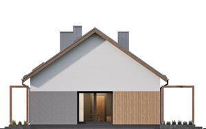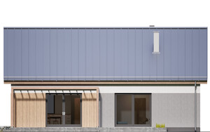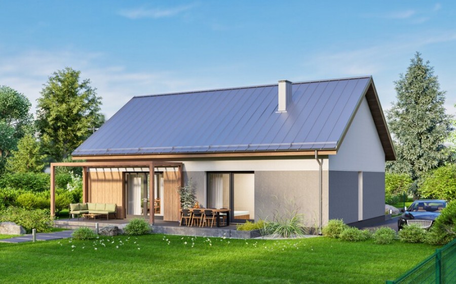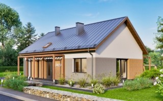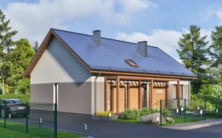 D420 to nowoczesny parterowy dom w technologii murowanej, z otwarciem nad salonem i kuchnią, nad pozostałą częścią poddasze nieużytkowe.
