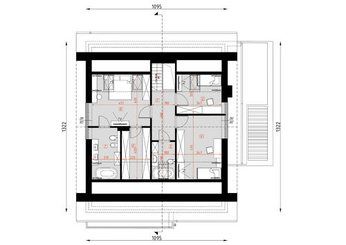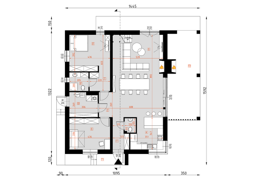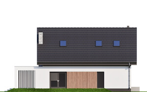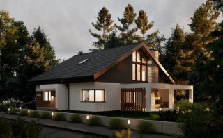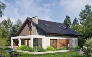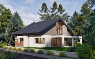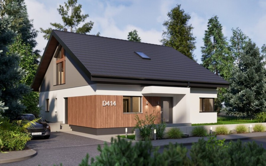 D414 to nowoczesny dom z podaszem użytkowym, w technologii murowanej, z przestronnym salonem. Na parterze istnieje możliwość wydzielenia dodatkowego mieszkania.
