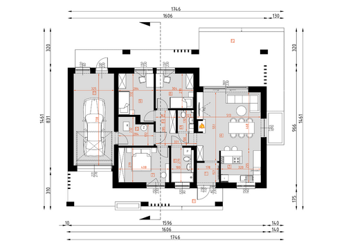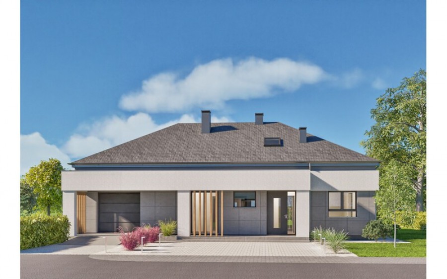 D422 to nowoczesny parterowy dom, w technologii murowanej.