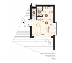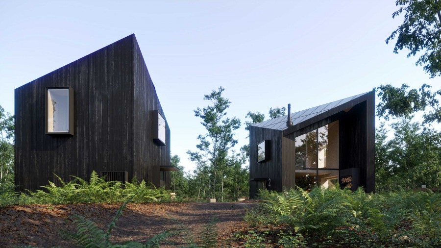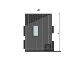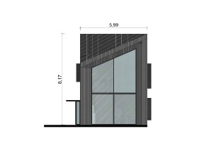 Projekt stworzony z myślą o komforcie i wypoczynku. To dom letniskowy z możliwością adaptacji na dom całoroczny. Jest połączeniem nietuzinkowej formy i funkcjonalności, idealny dla osób ceniących niepowtarzalny design. Asymetryczna bryła domu wyróżnia się nowoczesnym charakterem, a opalane drewno na elewacji nadaje mu unikalnego, naturalnego wyglądu, który doskonale wpisuje się w krajobraz.