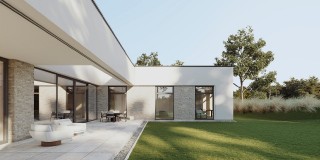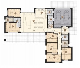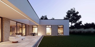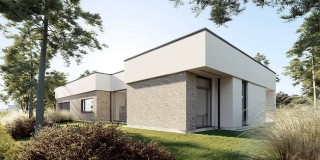 Dom Linea łączy nowoczesny design z funkcjonalnością na powierzchni 241 m2 . Tworzy on przestrzeń stworzona dla komfortu Twojej rodziny. Znajdziesz tu przestronny salon, wyodrębnioną kuchnię oraz aż sześć pokoi o funkcji sypialni lub biura. Uwagę warto zwrócić na układ strefy sypialni master, z której mamy dostęp do garderoby i do głównej łazienki. Bryła budynku wyróżnia się minimalistyczną, ponadczasową elegancją, a jednocześnie emanuje nowoczesnością.