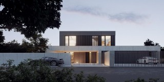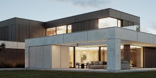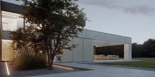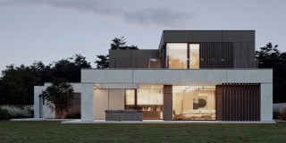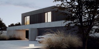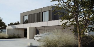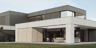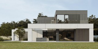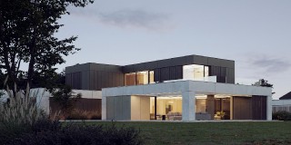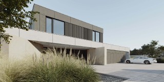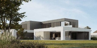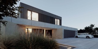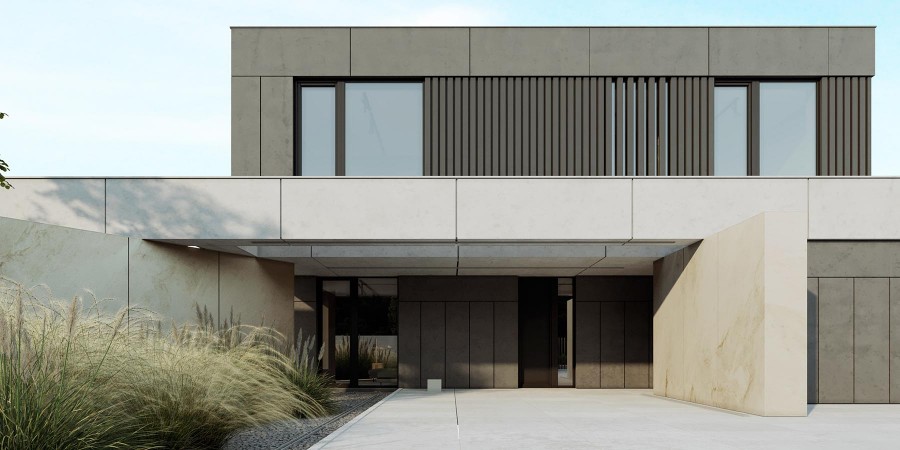 Dom Symetra wyróżnia się minimalistycznym stylem i najwyższej jakości materiałami – elewacja z płyt włókno – cementowych, spieków kwarcowych oraz subtelny tynk i detale o ponadczasowym charakterze nadają budynkowi elegancji.