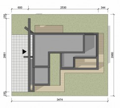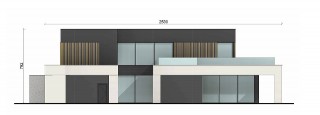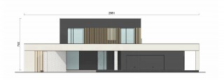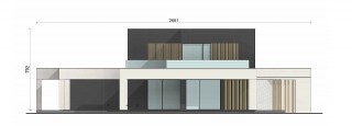 Projekt domu w formie prostej, prostopadłościennej bryły, który zachwyca nowoczesnym designem i przemyślanymi detalami. Od strony wejścia czeka na Ciebie zapraszająca strefa wyznaczona przez wolnostojące ścinaki w spiekach kwarcowych, a tuż po wejściu do domy ukazuje się otwarte patio z miejscem na drzewo, które wprowadzi element natury do Twojego codziennego życia.