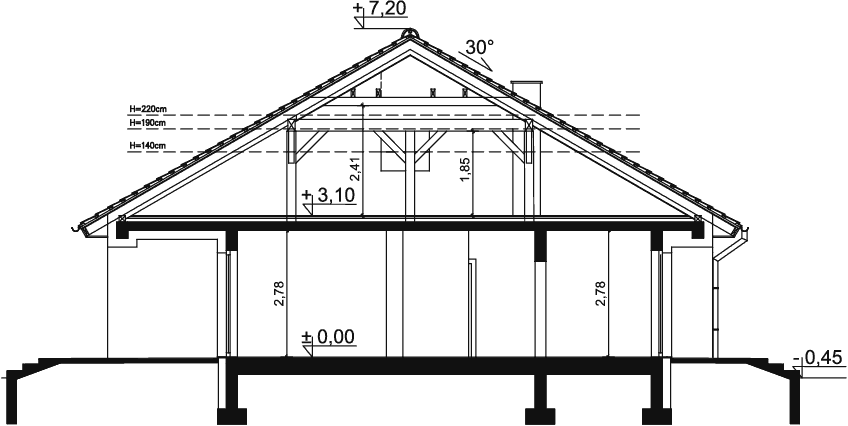 W korytarzu znalazły się też schody składane prowadzące na sporych rozmiarów strych. Budynek można wykończyć w nowoczesnym, jak i tradycyjnym stylu. Przy projektowaniu domu TRYTON 6 nie zapomnieliśmy o ekologii. Dokumentacja projektowa zawiera dodatkowo wentylację mechaniczną, a dzięki zastosowanym materiałom cały budynek ma minimalny wpływ na środowisko naturalne i spełnia wszystkie rygorystyczne wymogi współczesnego projektowania.