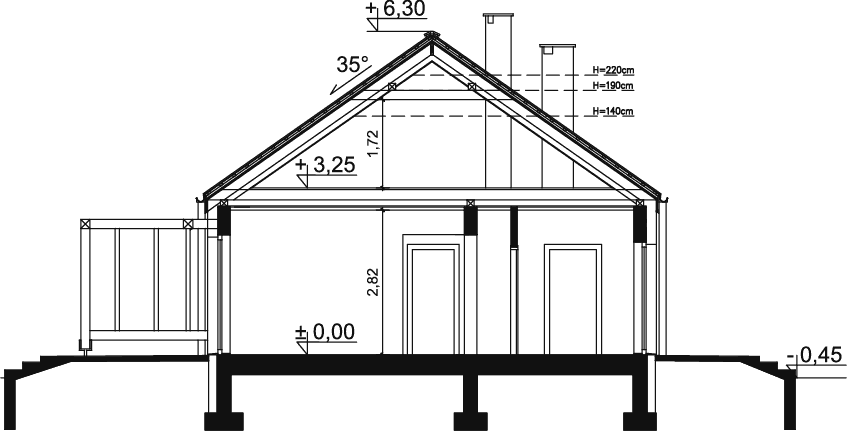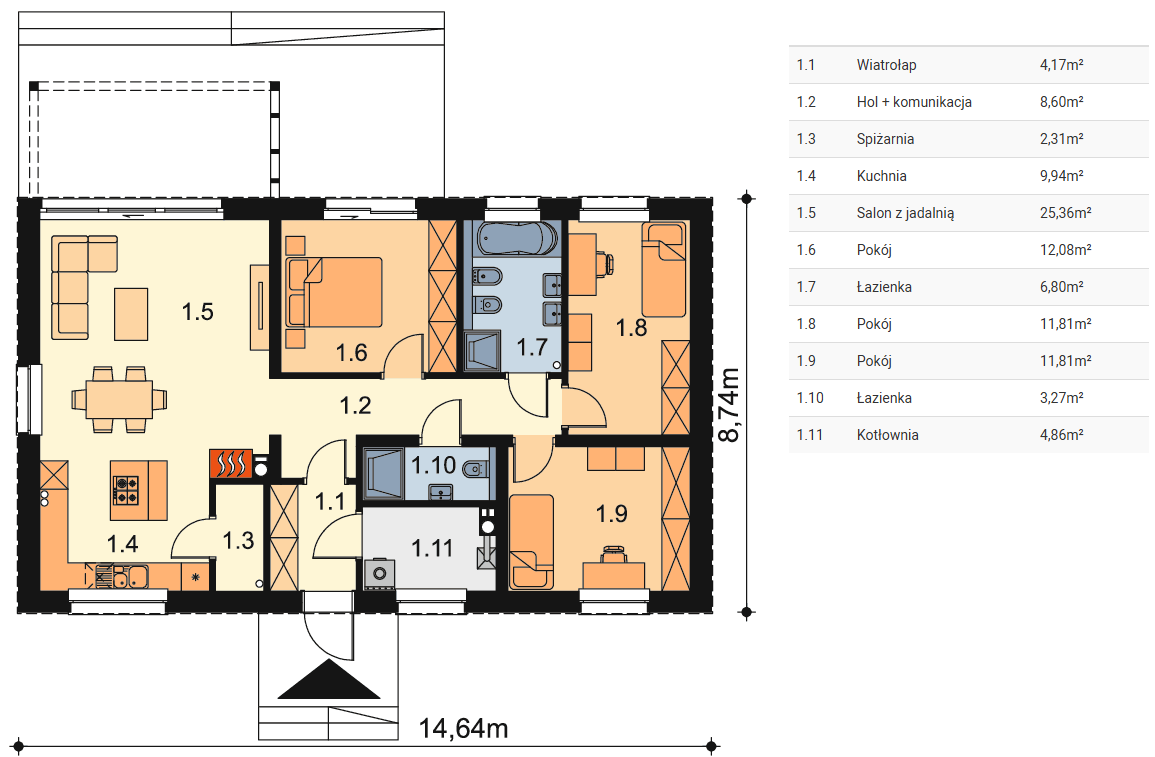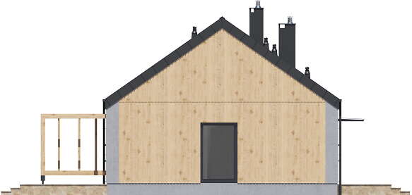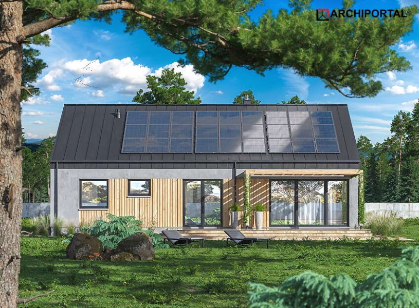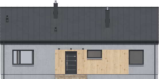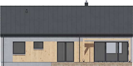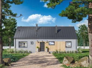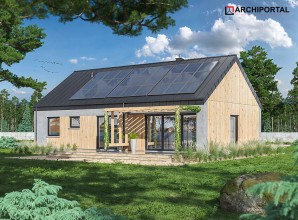 Projekt domu NIKE to przykład funkcjonalnie zaprojektowanego budynku w stylu nowoczesnej stodoły. Pokrycie dachu blachą, brak okapów, ciemna kolorystyka kontrastująca z naturalnymi okładzinami, wszystko to składa się na wyróżniającą się modernistyczną formę. Budynek przy tym jest prosty i tani w budowie, a dzięki zastosowanym materiałom i rozwiązaniom także energooszczędny. Wnętrze domu zostało zaprojektowane bardzo funkcjonalnie. Do dyspozycji mieszkańców jest przestronny, dobrze oświetlony salon, połączony z otwartą kuchnią, w pobliżu której znalazła się praktyczna spiżarnia. Strefa dzienna to trzy ustawne pokoje oraz dwie łazienki. W budynku zaprojektowano dwa rodzaje ogrzewania – dla wszystkich tych, którzy chcą ekologicznego i ekonomicznego budynku przewidziano pompę ciepła wraz z instalacją fotowoltaiczną, jest tutaj też kompletna instalacja gazowa dla osób chcących skorzystać z tego rozwiązania. Dzięki takiemu zabiegowi projektu nie trzeba przerabiać na etapie adaptacji. Centralnie położony kominek między salonem i kuchnią może się natomiast przydać zimą, jako dodatkowe źródło ogrzewania. Kolejnym atutem budynku jest w pełni zaprojektowana wentylacja mechaniczna z rekuperacją, co nie oznacza, że budynek nie posiada także tradycyjnej wentylacji grawitacyjnej. Wyboru rozwiązania można dokonać na etapie adaptacji. Projekt domu NIKE to harmonia nowoczesnego designu, funkcjonalności oraz dużej dbałości o środowisko naturalne.
