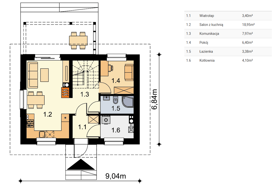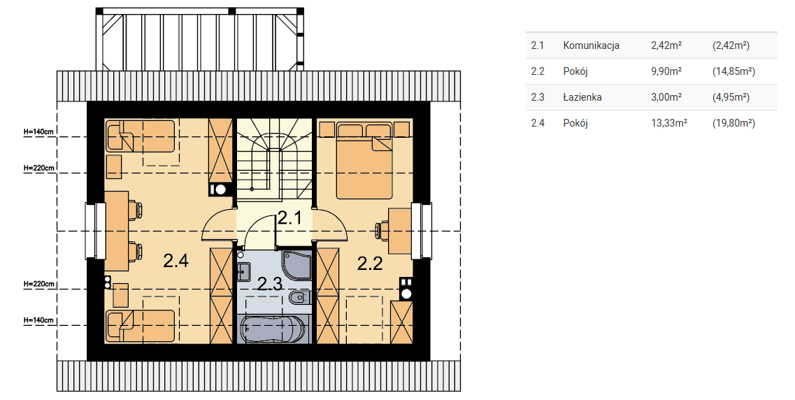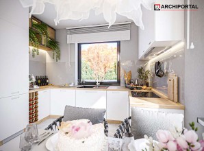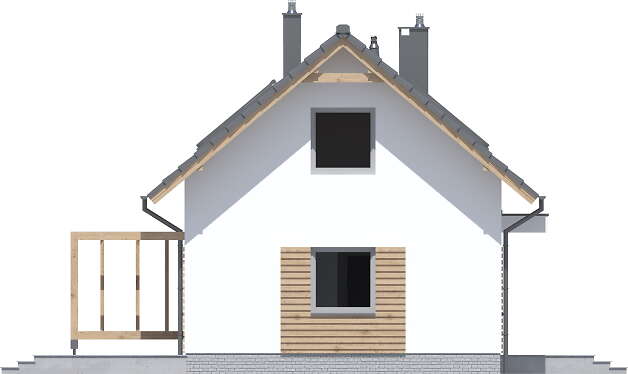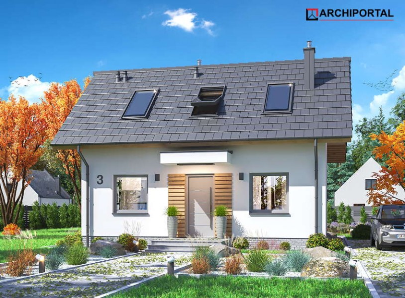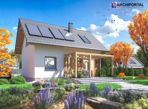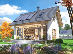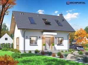 Niewielki domek z poddaszem użytkowym o powierzchni zabudowy nie przekraczającej 70 m², którego niewątpliwym atutem jest bardzo dobre wykorzystanie niewielkiej przestrzeni, a zwarta i prosta bryła oraz nieskomplikowany dach umożliwią jego szybką i ekonomiczną realizację. Na parterze zmieścił się salon wraz z otwartą kuchnią, wiatrołap, łazienka, dodatkowy pokój oraz kotłownia, w której zaprojektowano dwa rodzaje ogrzewania: na gaz oraz przy pomocy POMPY CIEPŁA. Inwestor ma w ten sposób wybór i może zdecydować, które ogrzewanie zastosować w swoim domu. Pakiet z pompą ciepła zawiera dodatkowo projekt ogrzewania podłogowego oraz projekt instalacji fotowoltaicznej. Centralnie położony kominek w salonie może się natomiast przydać zimą, jako dodatkowe źródło ogrzewania. Poddasze to typowa strefa nocna. Mieści ona sypialnię rodziców, wygodny pokój dla dwójki dzieci oraz komfortową łazienkę z miejscem na wannę i prysznic. Elewację budynku można wykończyć zarówno w tradycyjnym, jak i nowoczesnym stylu. Przy projektowaniu domu Amor 3 nie zapomnieliśmy o ekologii, dzięki zastosowanym materiałom cały budynek ma minimalny wpływ na środowisko naturalne i spełnia wszystkie rygorystyczne wymogi współczesnego projektowania.