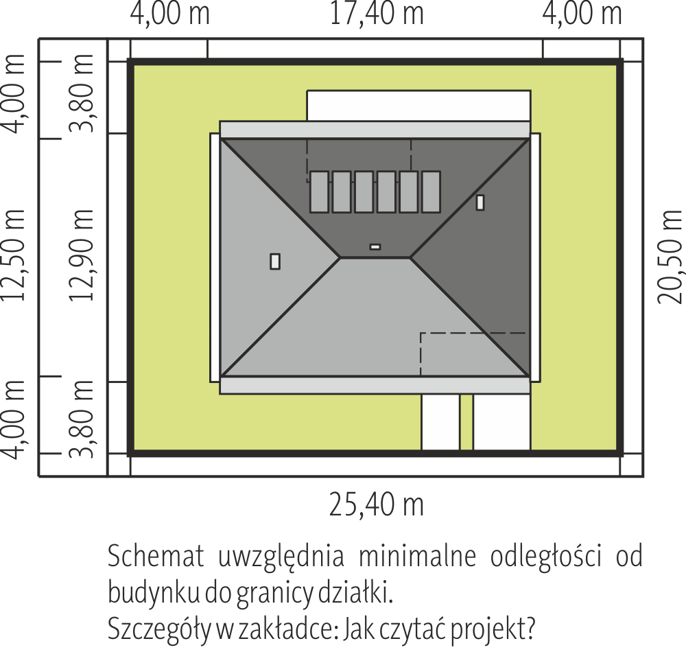 Uwaga! Dokumentacja Projektowa nie zawiera elementów małej architektury takich jak: donice, podesty, altany, grille ogrodowe, murki, pergole, a także innych elementów wizualizacji, takich jak: garaże i wiaty wolnostojące, drogi, podjazdy, ogrodzenia, baseny itp.