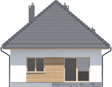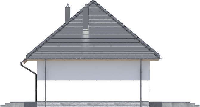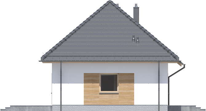 Budynek parterowy o powierzchni zabudowy nie przekraczającej 70 m2, którego rzut oparto na kwadracie, przykryty zgrabnym dachem czterospadowym. Jest to doskonała propozycja dla wszystkich tych, którzy marzą o własnym domu za rozsądne pieniądze. Dzięki funkcjonalnej organizacji wnętrza i optymalnie wykorzystanej przestrzeni w budynku zmieściły się: jasny salon z miejscem na narożną sofę wprost naprzeciwko atrakcyjnej ściany telewizyjnej, kącik jadalniany, otwarta kuchnia, w której zaprojektowano ciąg praktycznych blatów roboczych i możliwość ulokowania sprzętu w wysokiej zabudowie, dwa ustawne pokoje oraz łazienka. Centralnie położony kominek może się natomiast przydać zimą, jako dodatkowe źródło ogrzewania. W korytarzu znalazły się także schody opuszczane, prowadzące na sporych rozmiarów stryszek, który może posłużyć za dodatkową przestrzeń do przechowywania. Nieskomplikowana bryła oraz prosta konstrukcja wpłyną niewątpliwie na niskie koszty budowy oraz późniejszej eksploatacji. Elewację budynku można wykończyć zarówno w tradycyjnym, jak i nowoczesnym stylu. W budynku zaprojektowano ogrzewanie gazowe, a dokumentacja projektowa zawiera dodatkowo alternatywną wentylację mechaniczną. Dzięki zastosowanym materiałom cały budynek ma minimalny wpływ na środowisko naturalne i spełnia wszystkie rygorystyczne wymogi współczesnego projektowania.