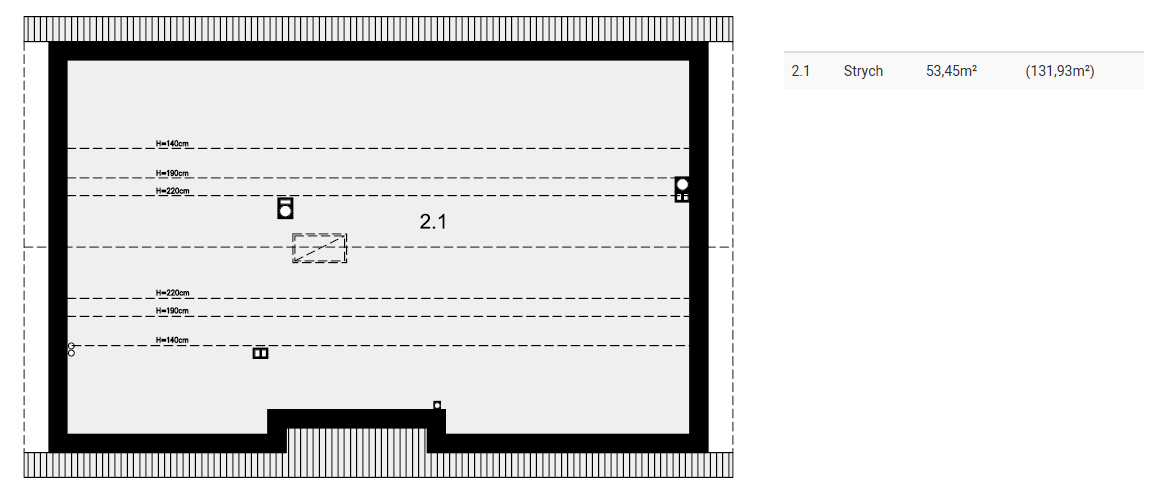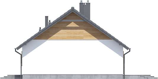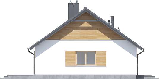 W korytarzu znalazły się schody opuszczane prowadzące na sporych rozmiarów strych. W budynku zaprojektowano wytrzymały, ale stosunkowo tani w budowie strop Teriva. Elewację domu można wykończyć zarówno w klasycznym, jak również nowoczesnym stylu, stosując np. modne okładziny drewniane lub drewnopodobne.