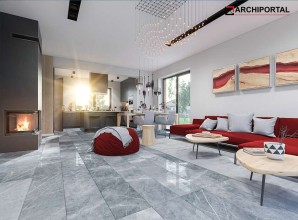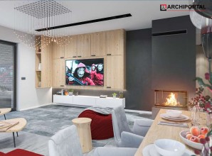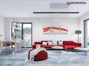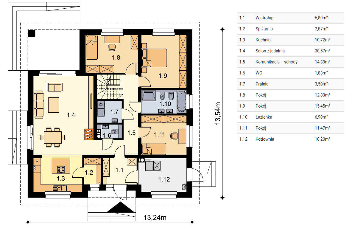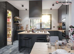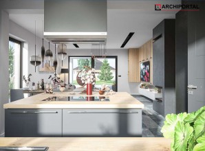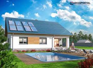Projekt nowoczesnej parterówki ze starannie zorganizowanym wnętrzem, zapewniającym mieszkańcom maksimum komfortu w codziennym użytkowaniu. Do środka dostaniemy się przez spory wiatrołap, w którym przewidziano miejsce na szafę przesuwną. Sąsiaduje z nim duża kotłownia, w której zaprojektowano dwa rodzaje ogrzewania: GAZOWE oraz na PALIWO STAŁE. Dzięki takiemu zabiegowi, projektu nie trzeba przerabiać, inwestor sam decyduje, który rodzaj ogrzewania zastosuje w swoim domu - dokumentacja zawiera schematy i rozwinięcia instalacji c.o. i elektrycznych dla obydwu rozwiązań. Kotłownia posiada też bezpośrednie wyjście na zewnątrz budynku.