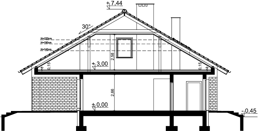 Dom ma prostą bryłę przez co będzie relatywnie tani w budowie, a jego elewację można wykończyć zarówno w nowoczesnym, jak i klasycznym stylu. Zaprojektowano w nim wentylację grawitacyjną oraz, jako alternatywę, wentylację mechaniczną z rekuperacją. Budynek opracowano w oparciu o najnowsze przepisy prawa budowlanego, z dużą dbałością o jego wpływ na środowisko naturalne.