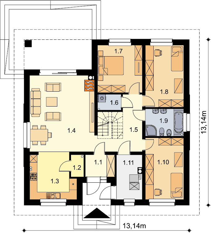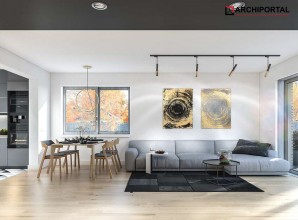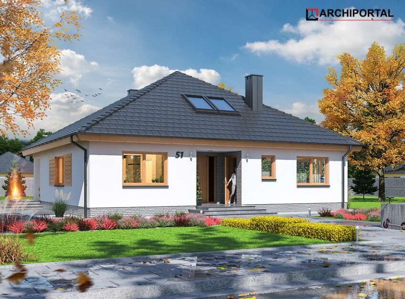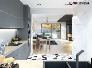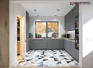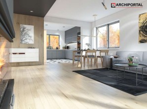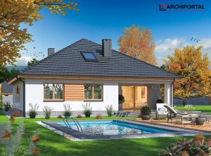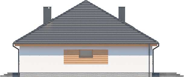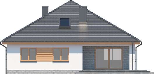 Projekt nowoczesnej parterówki ze starannie zorganizowanym wnętrzem, zapewniającym mieszkańcom maksimum komfortu w codziennym użytkowaniu. Do środka dostaniemy się przez spory wiatrołap, w którym przewidziano miejsce na dużą szafę przesuwną. Sąsiaduje z nim duża kotłownia, w której zaprojektowano dwa rodzaje ogrzewania: GAZOWE oraz na PALIWO STAŁE. Dzięki takiemu zabiegowi, projektu nie trzeba przerabiać, inwestor sam decyduje, który rodzaj ogrzewania zastosuje w swoim domu - dokumentacja zawiera schematy i rozwinięcia instalacji c.o. i elektrycznych dla obydwu rozwiązań. Kotłownia posiada też bezpośrednie wyjście na zewnątrz budynku.