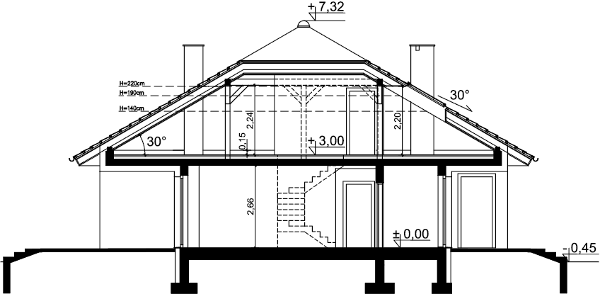 Dom ma prostą bryłę przez co będzie relatywnie tani w budowie, a jego elewację można wykończyć zarówno w nowoczesnym, jak i klasycznym stylu. Zaprojektowano w nim wentylację grawitacyjną oraz, jako alternatywę, wentylację mechaniczną z rekuperacją. Budynek opracowano w oparciu o najnowsze przepisy prawa budowlanego, z dużą dbałością o jego wpływ na środowisko naturalne.
