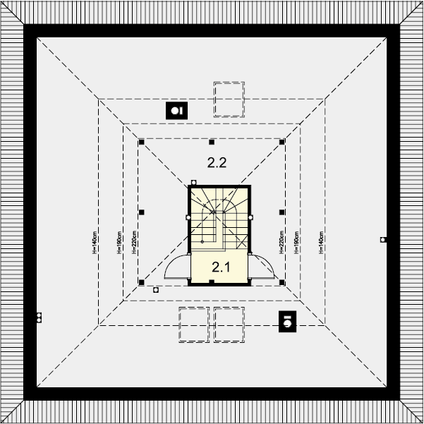 Prawdziwym atutem są jednak schody usytuowane w korytarzu, prowadzące bezpośrednio na poddasze, które w razie potrzeby można zaadaptować na dodatkowe pomieszczenia mieszkalne, zwiększając w ten sposób znacznie powierzchnię użytkową budynku.