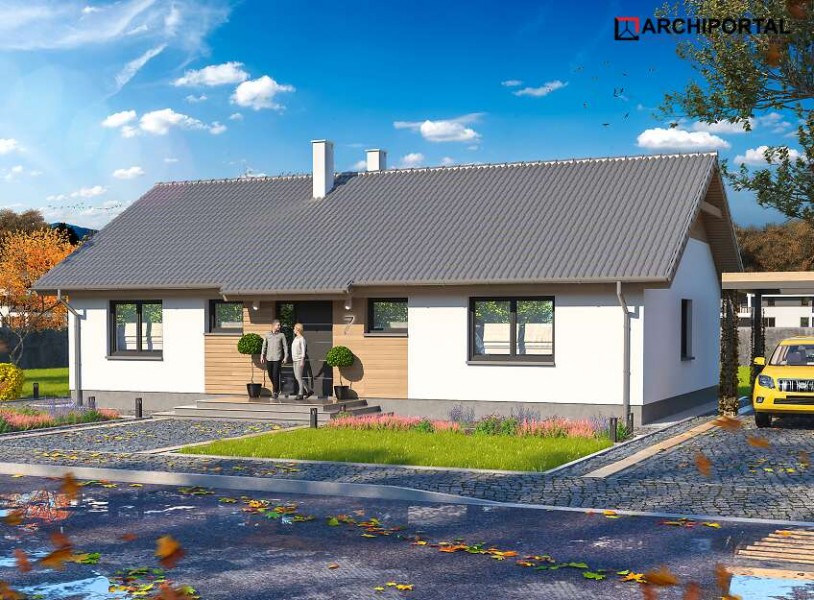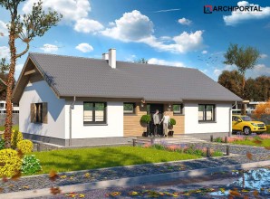 Sercem domu jest duży, dobrze oświetlony salon z centralnie usytuowanym kominkiem. Sąsiaduje on bezpośrednio z kuchnią, w której zaplanowano miejsce na sporo blatów roboczych i sprzętu w wysokiej zabudowie. Pozostała część domu to typowa strefa nocna, znalazły się tu 3 duże sypialnie, w których bez trudu zmieszczą się ciągi praktycznych szaf do przechowywania. W przestrzeni nocnej wygospodarowano też miejsce na niewielki gabinet, który w razie konieczności może pełnić rolę pokoju gościnnego. Do dyspozycji mieszkańców jest też spora łazienka, która bez trudu pomieści wannę, prysznic i pralkę, jeżeli np. inwestor zdecyduję się na piec na ekogroszek w kotłowni. Przy ogrzewaniu gazowym pralkę bez trudu można przenieść do kotłowni. W domu zaprojektowano wentylację grawitacyjną oraz, jako alternatywę, wentylację mechaniczną z rekuperacją. Budynek opracowano w oparciu o najnowsze przepisy prawa budowlanego, z dużą dbałością o jego wpływ na środowisko naturalne.