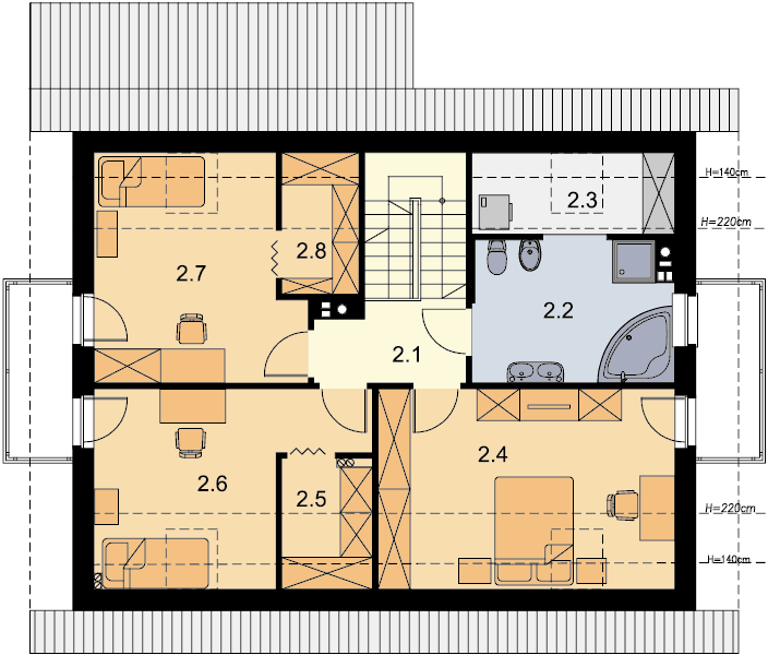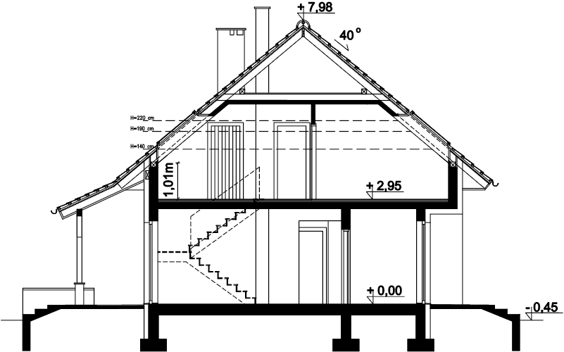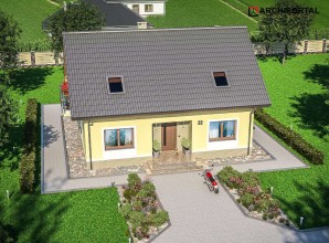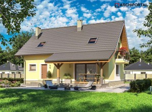Powiększona wersja projektu AMOR. Klasyczna bryła, dwuspadowy dach, doskonały dom dla 4-5 osobowej rodziny. W budynku duży nacisk położono na wygodę i funkcjonalność. Na parterze znalazły się: przestronny, dobrze oświetlony salon, ustawna kuchnia z praktyczną spiżarnią, łazienka, dodatkowy pokój z przeznaczeniem na gabinet lub pokój gościnny, oraz sporych rozmiarów kotłownia, w której zaprojektowano 2 rodzaje ogrzewania: GAZOWE oraz na PALIWO STAŁE. Dzięki takiemu rozwiązaniu, projektu nie trzeba przerabiać, inwestor sam decyduje, który rodzaj ogrzewania zastosuje w swoim domu - dokumentacja zawiera schematy i rozwinięcia instalacji c.o. i elektrycznych, obydwu sposobów ogrzewania. W ramach adaptacji można oddzielić kuchnię od pokoju dziennego ścianką działową. Na piętrze znalazły się 3 sypialnie, dwie z nich posiadają przestronne garderoby, największy pokój zaprojektowano natomiast tak, że pomieści szereg praktycznych szaf przesuwnych. Wszystkie pokoje mają wyjście na balkon. Do dyspozycji domowników jest także duża łazienka połączona z pralnią. Wysoka ścianka kolankowa (101 cm) sprawia, że powierzchnia użytkowa poddasza została dobrze wykorzystana. Dom ma prostą bryłę i nieskomplikowany dach, dzięki temu jest tani w budowie i późniejszej eksploatacji. Istnieje pomniejszona wersja projektu – AMOR. Projekt jest podobny do projektów: AMANT oraz IZOLDA. Budynek zaprojektowano w oparciu o najnowsze przepisy prawa budowlanego, z dużą dbałością o jego wpływ na środowisko naturalne.
