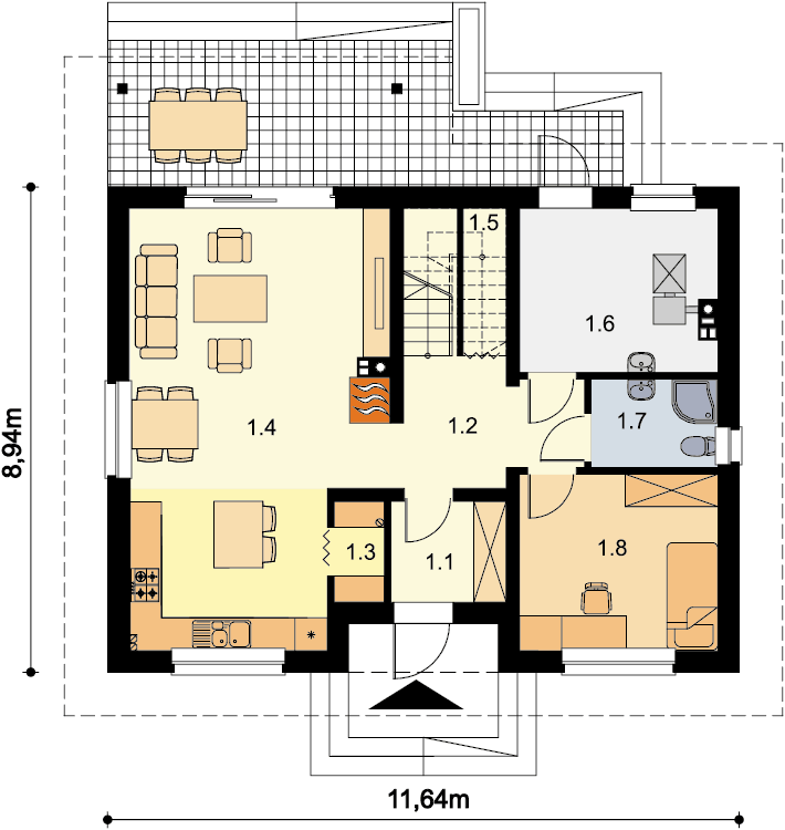 Uwaga! Dokumentacja Projektowa nie zawiera elementów małej architektury takich jak: donice, podesty, altany, grille ogrodowe, murki, pergole, a także innych elementów wizualizacji, takich jak: garaże i wiaty wolnostojące, drogi, podjazdy, ogrodzenia, baseny itp.