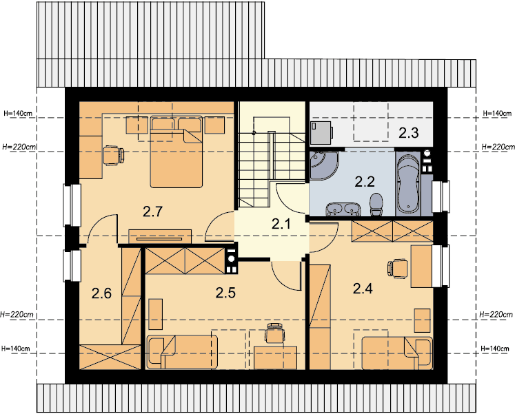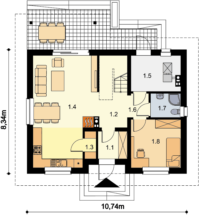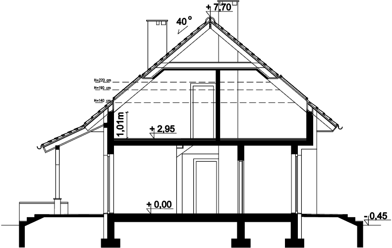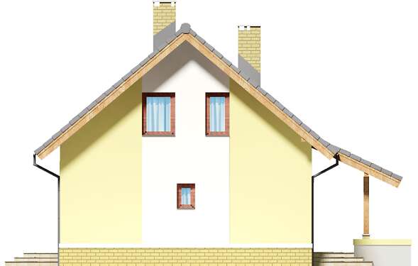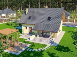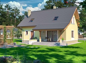Klasyczny dom z dwuspadowym dachem, który doskonale nadaje się dla 4-5 osobowej rodziny. W budynku duży nacisk położono na wygodę i funkcjonalność domowników. Na parterze znalazły się: przestronny, dobrze oświetlony salon, wygodna kuchnia z praktyczną spiżarnią, łazienka, dodatkowy pokój z przeznaczeniem na gabinet lub pokój gościnny, oraz sporych rozmiarów kotłownia, w której zaprojektowano 2 rodzaje ogrzewania: GAZOWE oraz na PALIWO STAŁE. Dzięki takiemu rozwiązaniu, projektu nie trzeba przerabiać, inwestor sam decyduje, który rodzaj ogrzewania zastosuje w swoim domu - dokumentacja zawiera schematy i rozwinięcia instalacji c.o. i elektrycznych, obydwu sposobów ogrzewania. W ramach adaptacji można oddzielić kuchnię od pokoju dziennego, usuwając natomiast ściankę przy schodach w salonie, możemy to pomieszczenie sporo powiększyć. Na piętrze znalazły się 3 sypialnie, jedna z własną, przestronną garderobą, łazienka oraz pralnia. Wysoka ścianka kolankowa (101 cm) sprawia, że powierzchnia użytkowa poddasza została dobrze wykorzystana. Dom ma prostą bryłę i nieskomplikowany dach, dzięki temu jest tani w budowie i późniejszej eksploatacji. Projekt jest podobny do projektów: AMANT oraz IZOLDA. Budynek zaprojektowano w oparciu o najnowsze przepisy prawa budowlanego, z dużą dbałością o jego wpływ na środowisko naturalne.