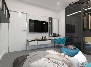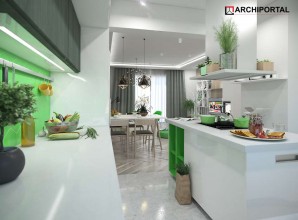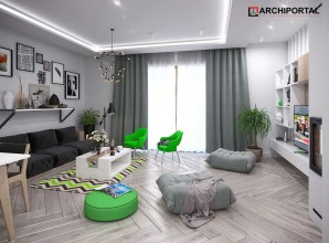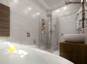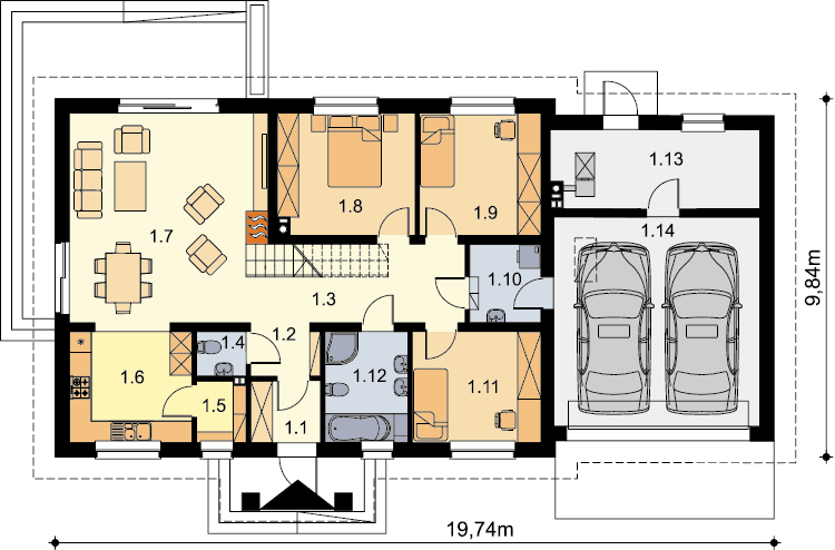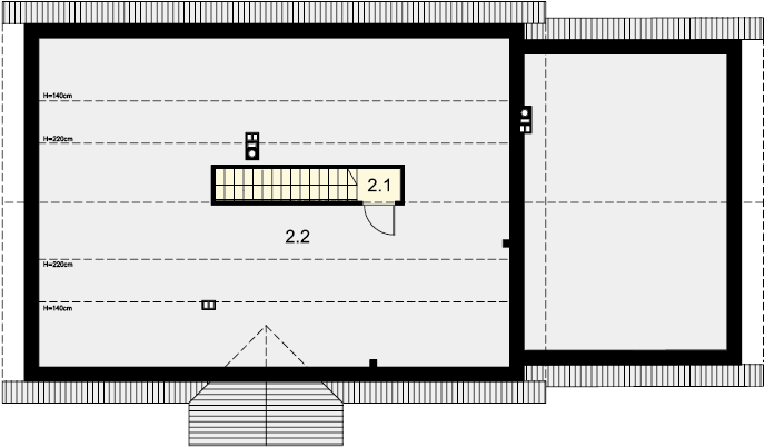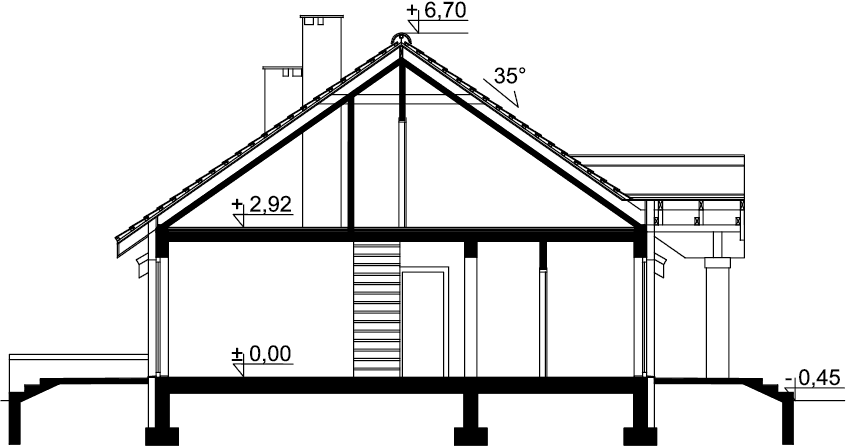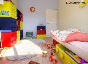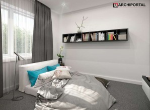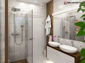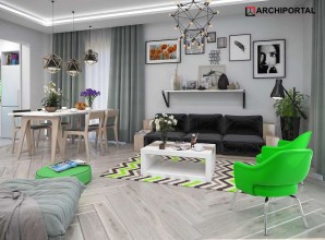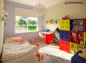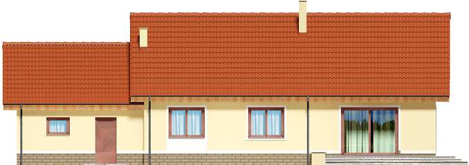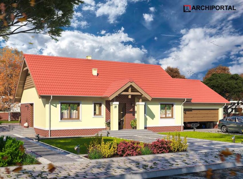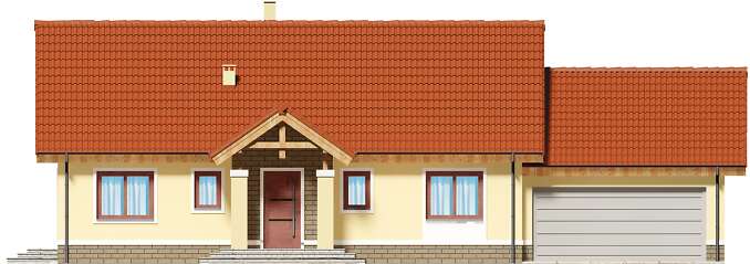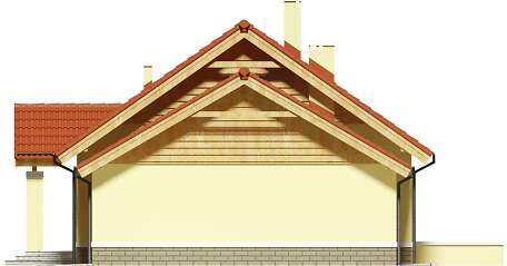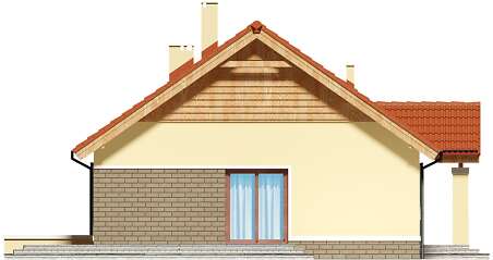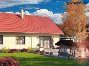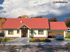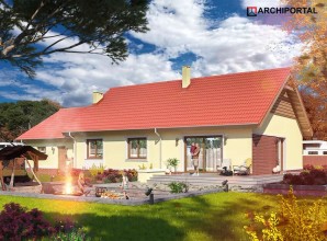 Dom parterowy z możliwością adaptacji poddasza. Budynek ma klasyczną prostą formę i nieskomplikowany dach, co korzystnie wpływa na oszczędności związane z jego budową oraz późniejszą eksploatacją. W ciągu dnia domownicy mogą relaksować się w dużym, dobrze oświetlonym salonie, połączonym z jadalnią. Z pokoju dziennego do ogrodu możemy dostać się zarówno przez duże drzwi tarasowe, jak również przez drzwi z boku budynku. Jadalnia płynnie przechodzi w kuchnię, którą po dostawieniu ścianki można przekształcić w zamkniętą. Nie zapomniano również o praktycznej spiżarni i dodatkowej toalecie, dostępnej od strony holu. Część nocna to trzy ustawne sypialnie oraz obszerna łazienka z miejscem na wannę i prysznic. Do dwustanowiskowego garażu dostajemy się przez pomieszczenie gospodarcze, które może pełnić rolę pralni. Za garażem znajduje się duża kotłownia z wyjściem na zewnątrz. W domu zaprojektowano dwa rodzaje ogrzewania: GAZOWE oraz na PALIWO STAŁE. Od przyszłego inwestora zależy, które z nich wykorzysta. Prawdziwą zaletą są jednak schody zaprojektowane w korytarzu. Bez rezygnowania z któregokolwiek z pomieszczeń mamy wygodny dostęp na poddasze, które może pełnić rolę strychu, pokoju hobby, pracowni lub dodatkowych pomieszczeń mieszkalnych. Dzięki takiemu rozwiązaniu inwestor ma możliwość adaptacji poddasza w późniejszym okresie bez utraty komfortu mieszkania na parterze. Budynek zaprojektowano w oparciu o najnowsze przepisy prawa budowlanego, z dużą dbałością o jego wpływ na środowisko naturalne.