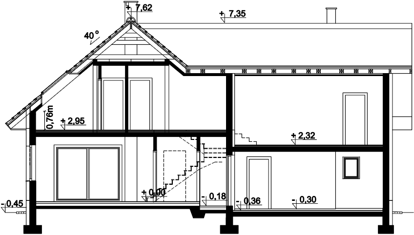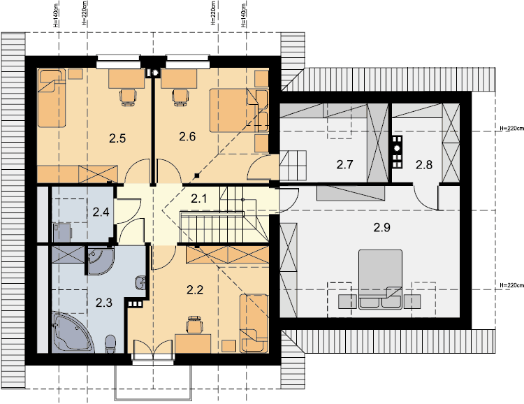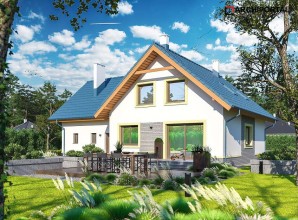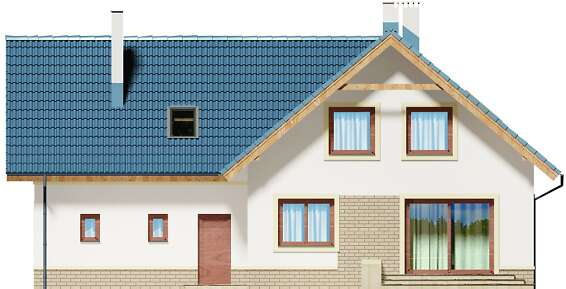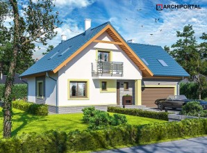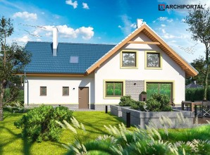 Klasyczny dom w nowoczesnej aranżacji, w którym duży nacisk położono na funkcjonalność i wygodę domowników. Do wnętrza dostajemy się przez gustowny podcień wejściowy oraz wygodny wiatrołap z miejscem na szafę przesuwną. W ciągu dnia domownicy relaksują się w dużym, dobrze oświetlonym salonie, połączonym z otwartą kuchnią, którą w razie potrzeby można oddzielić od pokoju dziennego. Nie zapomniano również o praktycznej spiżarni, łazience i dodatkowym pokoju, który może pełnić rolę np. gabinetu. Garaż dwustanowiskowy został połączony z resztą domu garderobą, za nim znajduje się duża kotłownia z bezpośrednim wyjściem na ogród. W budynku zaprojektowano dwa rodzaje ogrzewania GAZOWE oraz na PALIWO STAŁE. Przyszły inwestor zdecyduje, które z nich wykorzysta. Poddasze to typowa strefa nocna, trzy ustawne pokoje, łazienka z miejscem na wannę i prysznic oraz pralnia, którą w ramach adaptacji można zamienić np. na schowek lub garderobę. Prawdziwą zaletą domu jest jednak pomieszczenie dostępne ze spocznika schodów, zostało ono tak zaprojektowane, że jego ścianka kolankowa to prawie 140 cm, dzięki temu powierzchnia użytkowa jest bardzo duża. Strych podzielono na 3 części, dużą wygodną garderobę, dostępną z głównej sypialni oraz ewentualny dodatkowy pokój z garderobą. Oczywiście jest to tylko propozycja, pomieszczenia te można ze sobą połączyć, tworząc jedno duże. Dom jest prosty i tani w budowie, jego elewację można wykończyć zarówno w nowoczesny jak i klasyczny sposób. Budynek zaprojektowano w oparciu o najnowsze przepisy prawa budowlanego, z dużą dbałością o jego wpływ na środowisko naturalne.