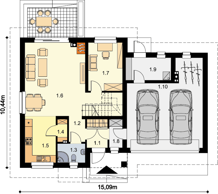 Uwaga! Dokumentacja Projektowa nie zawiera elementów małej architektury takich jak: donice, podesty, altany, grille ogrodowe, murki, pergole, a także innych elementów wizualizacji, takich jak: garaże i wiaty wolnostojące, drogi, podjazdy, ogrodzenia, baseny itp.