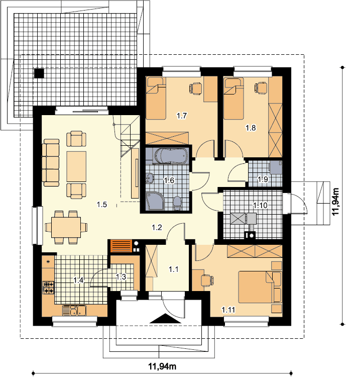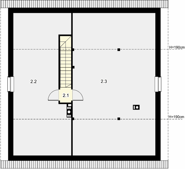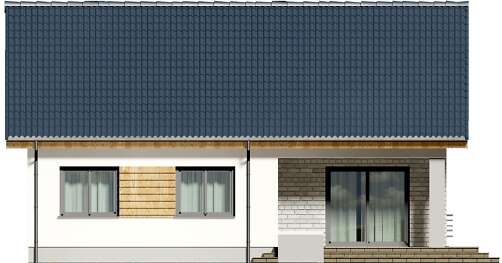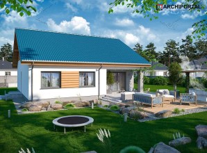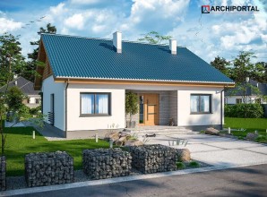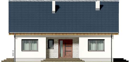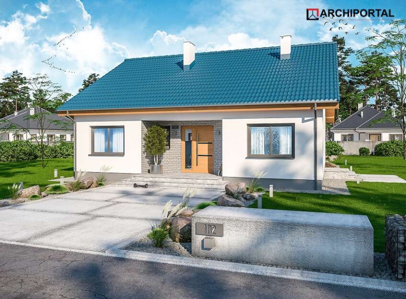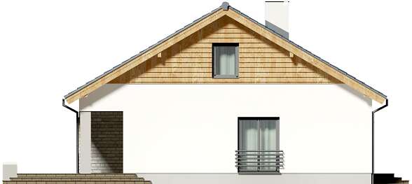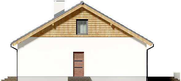 Niewielki dom parterowy z możliwością adaptacji poddasza. Do dyspozycji mieszkańców jest duży salon, połączony z otwartą kuchnią, w sąsiedztwie której znalazła się praktyczna spiżarnia. Kominek został umieszczony centralnie, co ułatwi ogrzewanie budynku w zimie. Znajdują się tu ponadto 3 ustawne pokoje, łazienka, pralnia oraz duże pomieszczenie gospodarcze z wyjściem na zewnątrz. W domu przewidziano dwa rodzaje ogrzewania do wyboru: GAZOWE oraz na PALIWO STAŁE. W salonie zaprojektowano schody prowadzące na nieużytkowe poddasze. Zostało ono podzielone na dwa dodatkowe, duże pomieszczenia. Od inwestorów będzie zależało na co pokoje zostaną zaadaptowane. Można z nich utworzyć także jedno duże pomieszczenie, a schody prowadzące na strych mogą być usytuowane np. w jednym z pokojów na parterze. Dom ma prostą bryłę i nieskomplikowany dach, przez co jest tani w budowie i późniejszej eksploatacji, jego elewację można wykończyć zarówno w tradycyjny jaki i nowoczesny sposób.