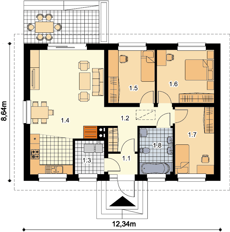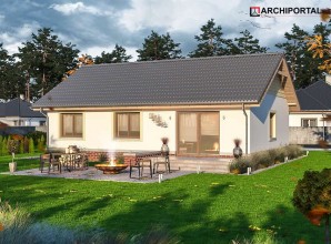 Nowa wersja popularnego projektu, w której przewidziano ogrzewanie na PALIWO STAŁE. Ten niewielki dom parterowy doskonale nadaje się dla 3 - 4 osobowej rodziny. Jego zaletami są: funkcjonalność, prosta bryła budynku i niskie koszty budowy oraz późniejszej eksploatacji. Wnętrze domu zostało podzielone na dwie strefy dzienną i nocną. W ciągu dnia mieszkańcy mogą relaksować się w przestronnym, dobrze oświetlonym salonie, połączonym z otwartą kuchnią, w sąsiedztwie której znajduje się kotłownia, dostać się do niej można z wiatrołapu. Strefa nocna to 3 ustawne pokoje oraz duża, jasna łazienka. Dom posiada niewielki stryszek, na który prowadzą składane schody w korytarzu. Centralne usytuowanie kominka pozwala rozważyć również ten sposób ogrzewania. Elewację budynku można wykończyć zarówno w sposób klasyczny jak i nowoczesny. Dom zaprojektowano w oparciu o najnowsze przepisy prawa budowlanego z dużą dbałością o jego wpływ na środowisko naturalne.