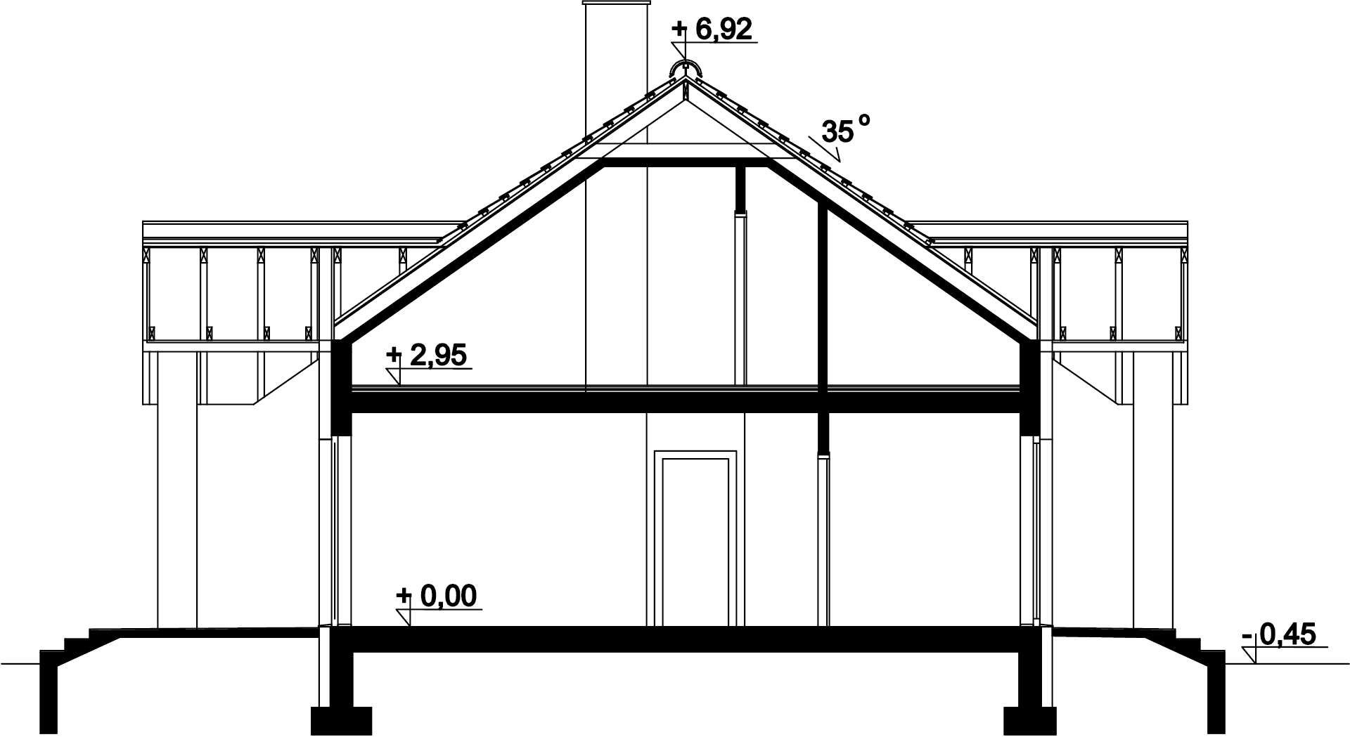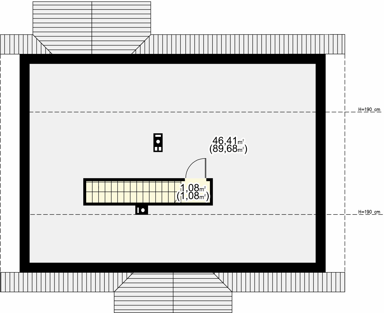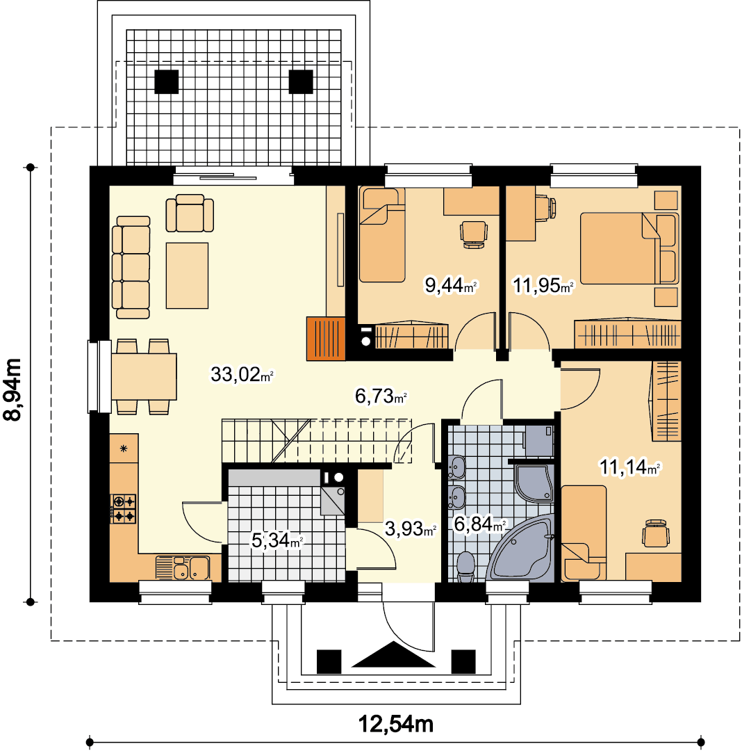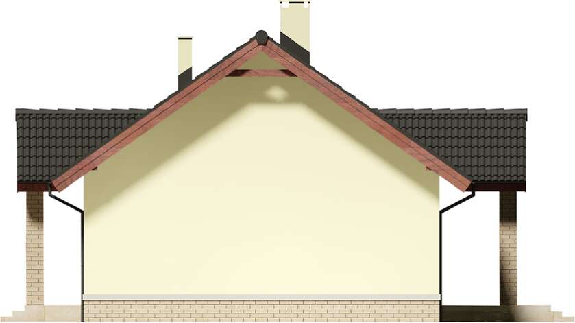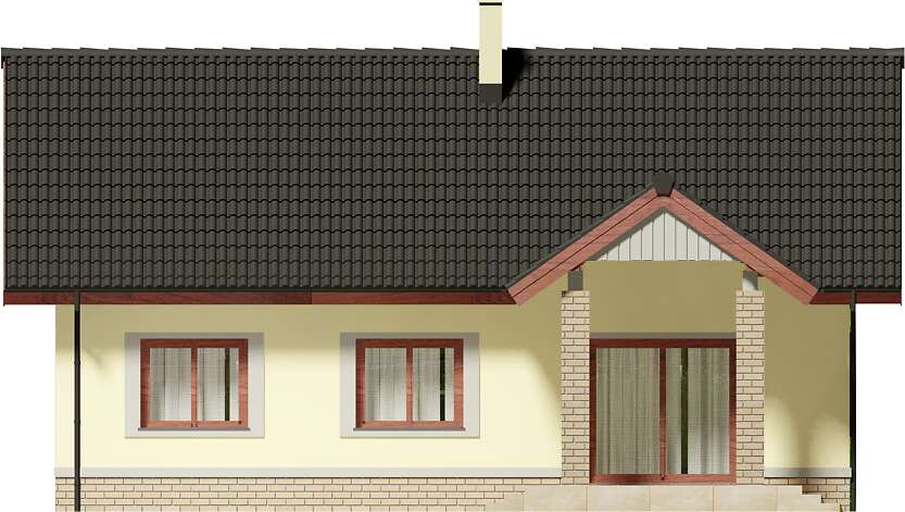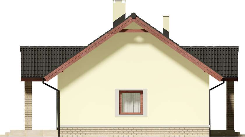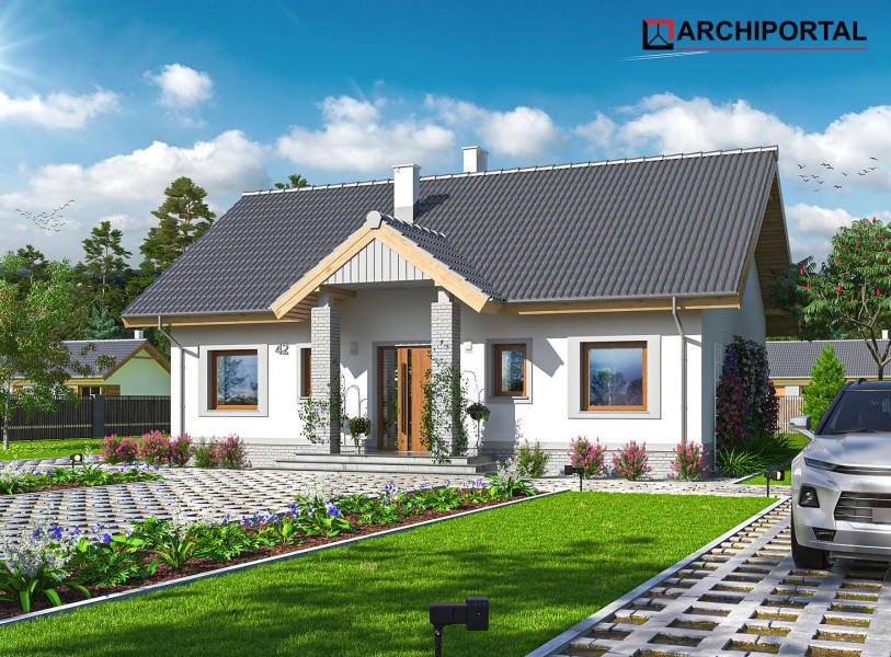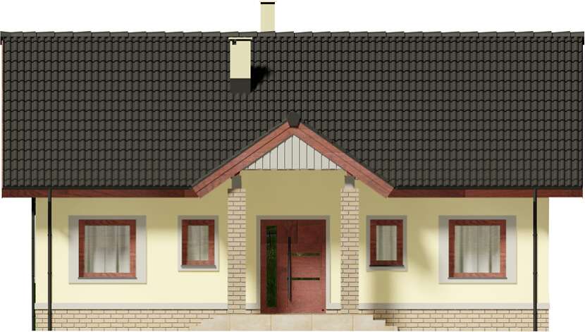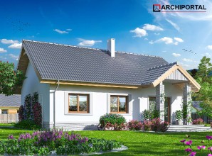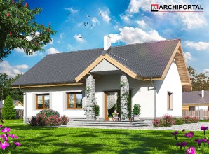 Ten niewielki dom parterowy doskonale nadaje się dla 3 - 4 osobowej rodziny. Jego zaletami są: funkcjonalność, prosta bryła budynku, niskie koszty budowy i późniejszej eksploatacji, oraz możliwość adaptacji poddasza. Wnętrze domu zostało podzielone na dwie strefy dzienną i nocną. W ciągu dnia mieszkańcy mogą relaksować się w przestronnym, dobrze oświetlonym salonie, połączonym z otwartą kuchnią, w sąsiedztwie której znajduje się spora kotłownia, pełniącą jednocześnie rolę spiżarni. Strefa nocna to 3 ustawne pokoje oraz duża, jasna łazienka, w której przewidziano miejsce na wannę, prysznic oraz pralkę. W salonie zaprojektowano, schody drewniane prowadzące na poddasze, które w razie potrzeby może zostać zaadaptowane na studio, pokój hobby, lub dodatkowe pokoje dla mieszkańców. W projekcie przewidziano strop żelbetowy, co daje możliwość dowolnej aranżacji przestrzeni na poddaszu włącznie z doprojektowaniem dodatkowej łazienki. Dom posiada tradycyjną elewacje, którą można wykończyć także w nowoczesny sposób, a zadaszone wejście i taras dodają mu uroku i charakteru.