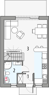 Projekt Mewa to doskonale zaplanowany niewielki dom z poddaszem, idealny do zabudowy bliźniaczej lub szeregowej. Zajmuje powierzchnię użytkową nieprzekraczającą 65 metrów kwadratowych, co czyni go doskonałym wyborem dla osób poszukujących kompaktowego, a jednocześnie funkcjonalnego miejsca do zamieszkania.