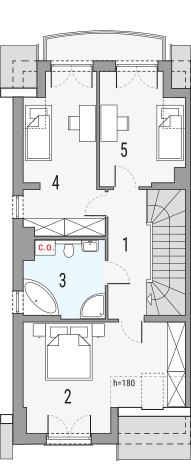 Projekt domu "Hubert 1" to idealne rozwiązanie dla rodzin poszukujących przestronnego i funkcjonalnego miejsca do życia. Budynek jako prosta i oszczędna bryła przeznaczona do zabudowy szeregowej lub bliźniaczej, co przekłada się na niskie koszty budowy. Wnętrze zaprojektowano tak, by zapewnić wygodę i komfort mieszkańcom - z przodu jednostanowiskowy garaż plus duży hol, natomiast tylna część parteru łączy pokój dzienny, jadalnię i kuchnię, tworząc centralne miejsce spotkań. Na piętrze znajdują się trzy sypialnie oraz łazienka. Warto nadmienić, że dwie sypialnie mają wyjście na balkon od strony ogrodu. Poddasze może służyć jako pracownia, pokój gościnny lub niezależna kondygnacja dla dzieci. Zadaszony taras ogrodowy integruje dom z otoczeniem, sprzyjając wspólnym spotkaniom rodzinym i gościom. "Hubert 1" to propozycja dla osób ceniących prostotę, funkcjonalność i przestrzeń dla całej rodziny.