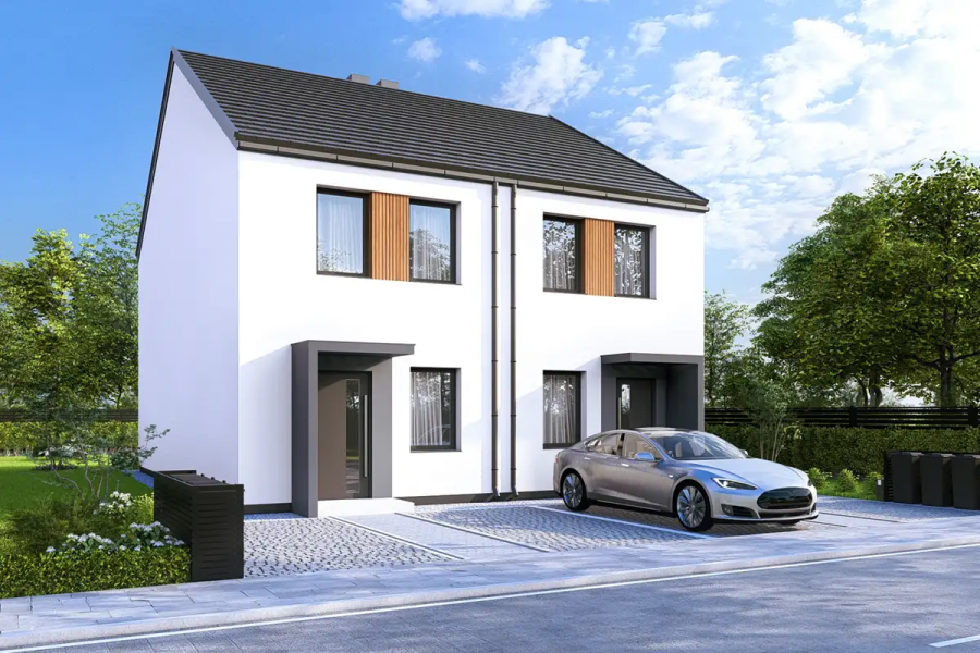 Julianna 2 to idealny wybór dla rodzin szukających nowoczesnego domu w zabudowie bliźniaczej lub dla inwestorów planujących wynajem. Projekt łączy elegancję z praktycznymi rozwiązaniami, które odpowiadają współczesnym potrzebom mieszkańców.
