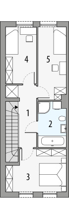 Piętro oferuje strefę prywatną z trzema przestronnymi sypialniami oraz łazienką. Duże przeszklenia zapewniają naturalne doświetlenie wnętrz, tworząc przytulną i sprzyjającą wypoczynkowi atmosferę. Dzięki przemyślanemu układowi przestrzeń każdego lokalu jest maksymalnie wykorzystana, oferując komfort i funkcjonalność.