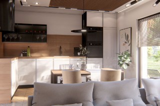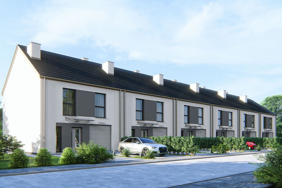 Przedstawiamy Kalipso 5 - elegancki dom piętrowy z garażem i doskonałą przestrzenią do przechowywania, idealny dla każdej rodziny. Wyróżniający się minimalistyczną elegancją, ten projekt architektoniczny charakteryzuje się brakiem podcieni i okapów. Na parterze dominuje przestronna i pełna światła strefa dzienna, zintegrowana z aneksem kuchennym. Dodatkowo, blisko schodów ulokowano pomieszczenie gospodarcze oraz niewielką toaletę. Wychodząc z salonu i kuchni na taras, otwiera się widok na zachwycające pejzaże, zachody słońca i urokliwą otoczkę natury - doskonałe tło do spotkań z rodziną i przyjaciółmi. Na piętrze znajdują się cztery sypialnie z urokliwymi lukarnami, które gwarantują przestrzeń i naturalne światło. Te jasne i przestronne pokoje mogą służyć jako miejsce do relaksu lub wypoczynku, dając ci wiele możliwości do wyboru. Ten wszechstronny projekt doskonale pasuje do koncepcji bliźniaka lub szeregu. Jego elastyczność pozwala na dostosowanie do twoich indywidualnych potrzeb, tworząc przy tym projekt idealnie dopasowany do twoich oczekiwań.