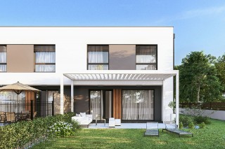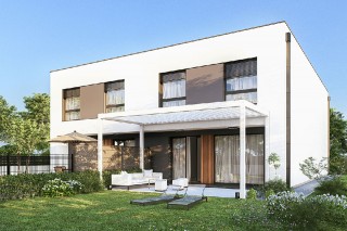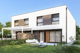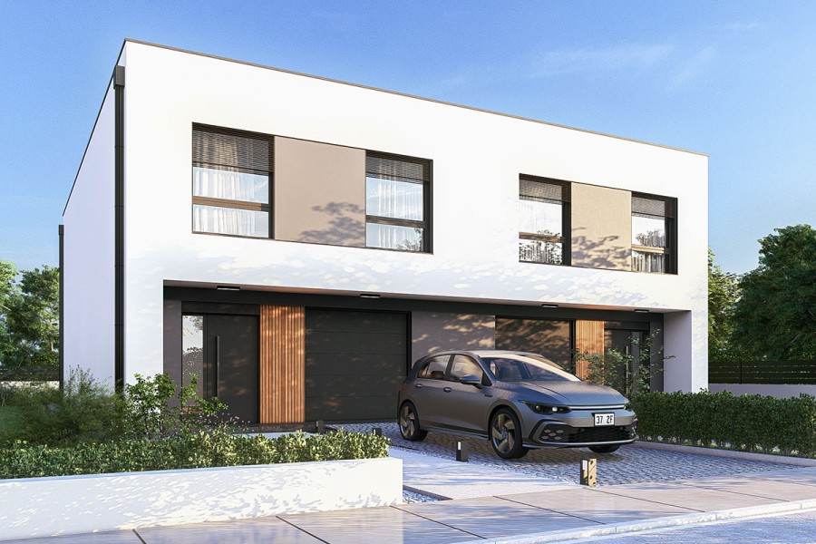 Projekt Zenit to nowoczesna propozycja domu piętrowego z płaskim dachem, zaprojektowanego z myślą o funkcjonalności i wygodzie mieszkańców. Jego wąska, ale długa bryła sprawia, że idealnie nadaje się do zabudowy bliźniaczej lub szeregowej, doskonale wpisując się w nowoczesne trendy urbanistyczne. Dodatkowo jego płaski dach idealnie nadaje się do rozmieszczenia na nim paneli fotowoltaicznych, które można ustawiać w dowolnym kierunku i są przy tym niezauważalne z punktu widzenia osób będących na dole, co sprawia, że panele nie oszpecają architektury tego budynku.