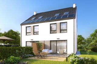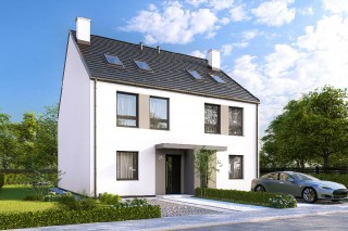 Nowoczesna propozycja bliźniaka lub domu szeregowego, idealna dla rodzin szukających komfortu i prywatności, a jednocześnie ceniących sąsiedzkie relacje. Projekt łączy w sobie funkcjonalność z estetyką, tworzymy harmonijną przestrzeń na trzech kondygnacjach.