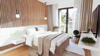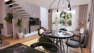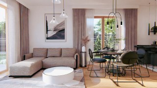 Każdy z dwóch lokali oferuje perfekcyjnie rozplanowaną przestrzeń. Na parterze znajduje się przestronny salon z wielkimi przeszkleniami, połączony z jadalnią i otwartą kuchnią – to miejsce spotkań, które tętni życiem. Dodatkowy pokój na tym poziomie może pełnić funkcję sypialni, gabinetu lub pokoju gościnnego, dostosowując się do indywidualnych potrzeb mieszkańców. Każdy lokal posiada osobne wejście, gwarantując mieszkańcom pełną niezależność i poczucie prywatności.