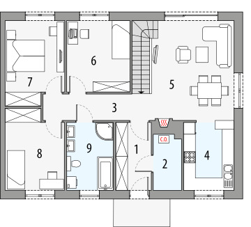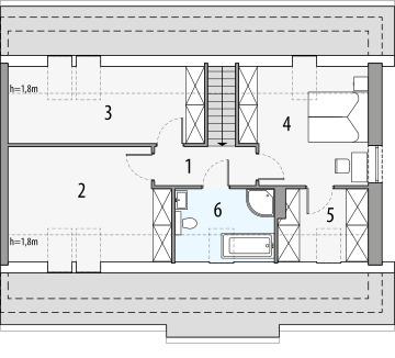 Poddasze każdego lokalu to azyl dla domowników. Przemyślany układ trzech pokoi, w tym głównej sypialni z garderobą, zapewnia komfort i funkcjonalność. Znajduje się tam również przestronna łazienka, a dodatkowa powierzchnia korytarza tworzy wrażenie przestrzeni i harmonii. Całość projektu została zaprojektowana z myślą o wygodzie i estetyce, dzięki czemu każdy lokal w tym domu może stać się wymarzonym miejscem dla swojej rodziny.