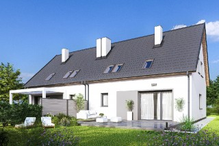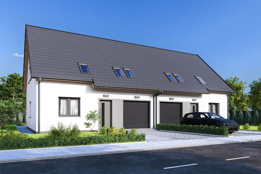 Szukasz domu, który łączy w sobie prostotę, funkcjonalność i harmonię z otoczeniem? Bliźniak Sara 2 to idealna propozycja dla Ciebie! Kwadratowa bryła budynku nadaje mu nowoczesny i schludny wygląd, a dwuspadowy dach o kącie nachylenia 44 stopnie zapewnia optymalne warunki do użytkowania poddasza.