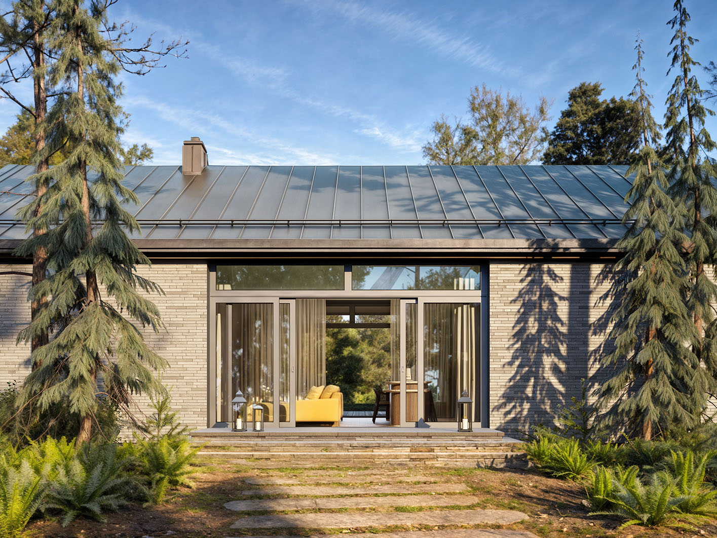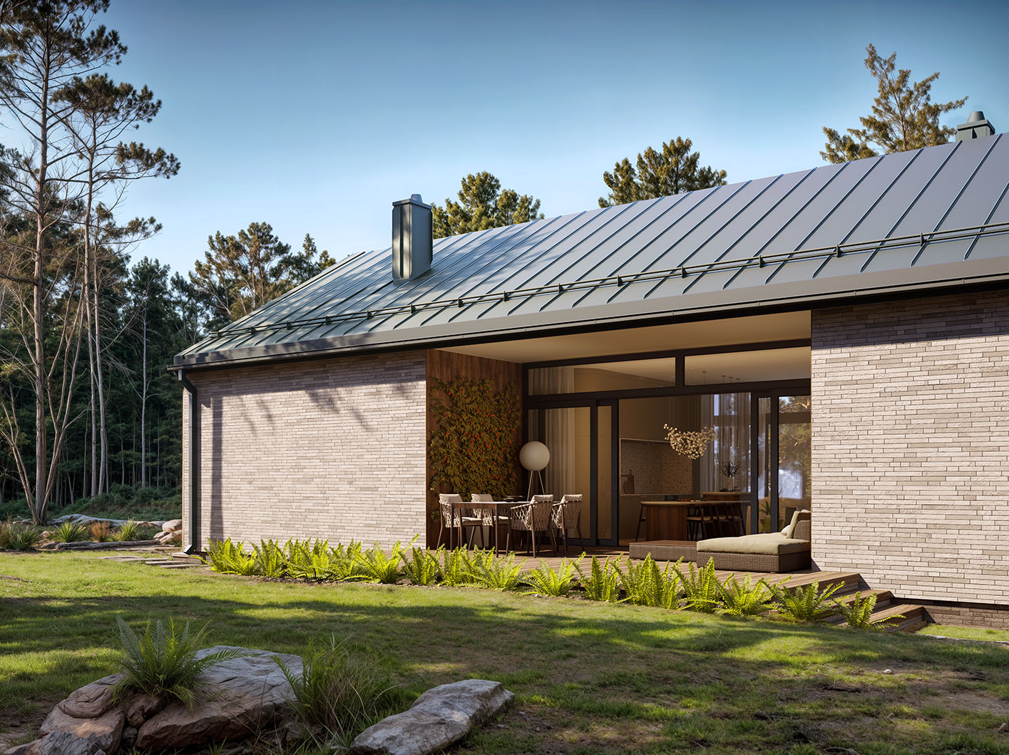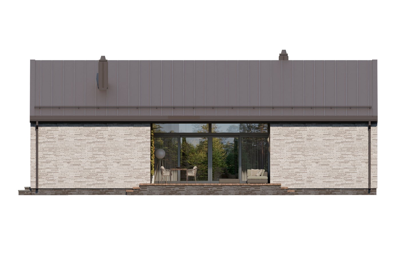 Mati to parterowy dom jednorodzinny w stylu nowoczesnej stodoły o bardzo ciekawej architekturze. Jego centralnym punktem jest całkowicie przeszklona część dzienna. Rozbija ona tę prostą bryłę na rzucie prostokąta przykrytego dwuspadowym dachem. Przestrzeń dzienna nie tylko pozwala na szereg aranżacji wnętrza ale umożliwia także na przenikanie poprzez przeszklenia i tarasy, otaczającej przyrody. Mimo tak ciekawej części dziennej dom charakteryzuje się prostym, funkcjonalnym układem pomieszczeń, który swoim programem zapewnia optymalny komfort 4-osobowej rodzinie. Od frontu budynku przewidziano wiatrołap i hol, kotłownię, łazienkę oraz sypialnię rodziców z łazienką. W strefie nocnej po drugiej stronie budynku zaprojektowano dwie sypialnie dzieci, łazienkę, pralnię oraz długi korytarz z szeregiem szaf. Bryła jest zaprojektowana w delikatnej kolorystyce - jasnoszara płytka elewacyjna i szalówka w naturalnym kolorze drewna. W domu Mati idealnie połączono prostą, bryłę z przyciągającym uwagę otwarciem w części dziennej, co może się spodobać zarówno inwestorom poszukującym domu bardziej klasycznego jak i tym otwartym na współczesne spojrzenie na architekturę.