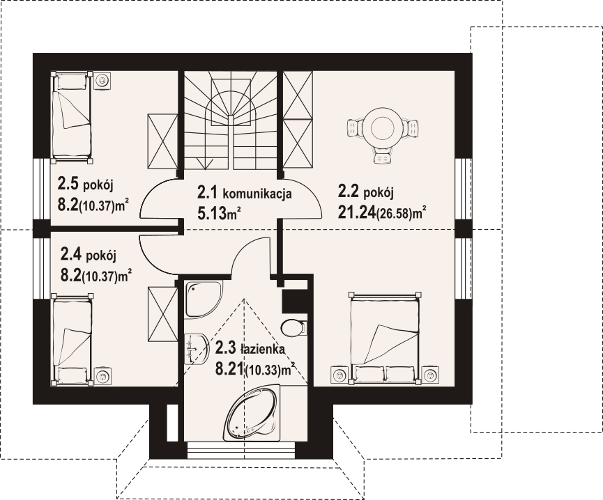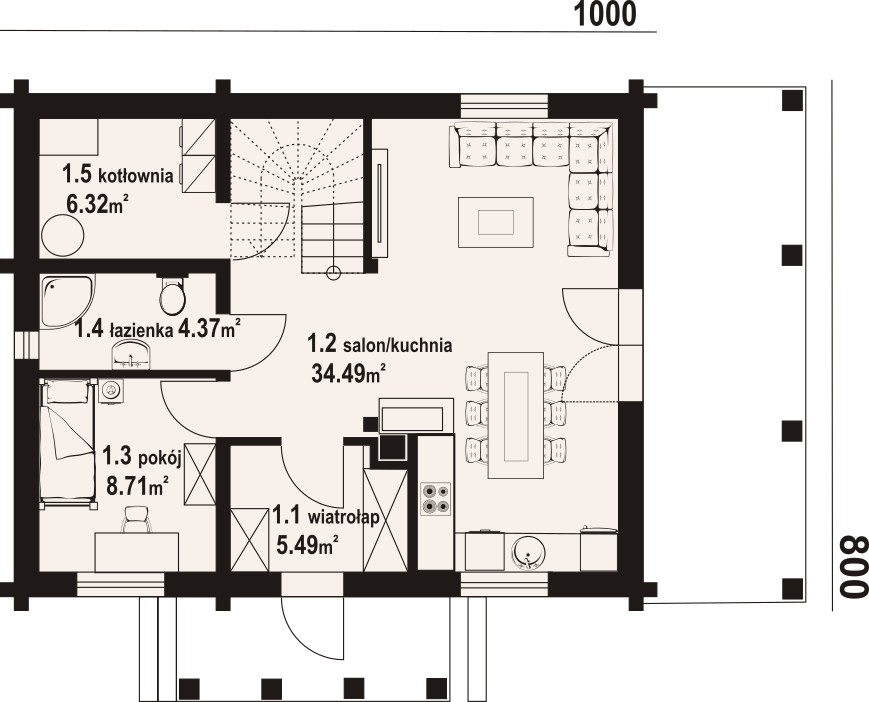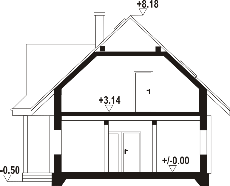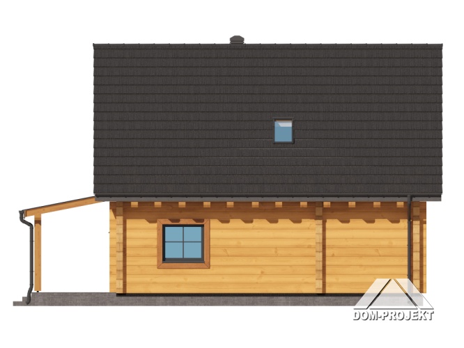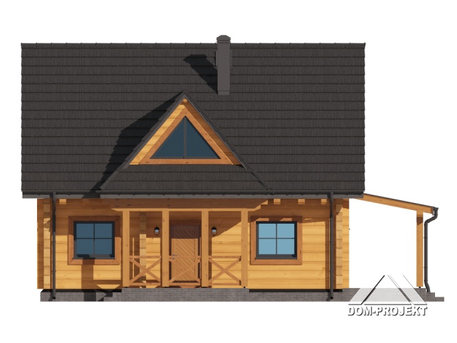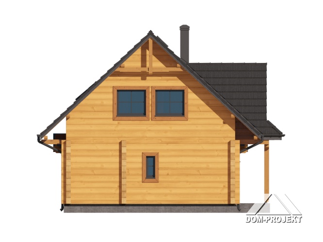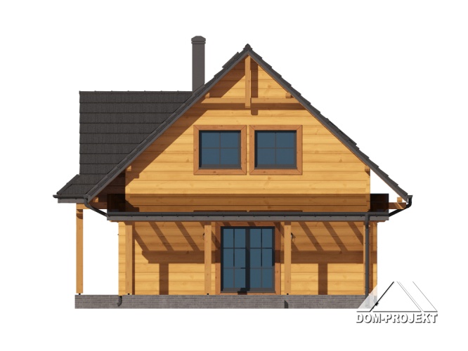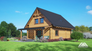 Projekt ekologicznego, szybkiego w budowie domu z bali, łączący klasyczną architekturę drewnianą z nowoczesnością. Na parterze duża, otwarta kuchnia z jadalnią oraz salon z wyjściem na zadaszony taras. Ponadto dodatkowy pokój, łazienka, kotłownia, wiatrołap. Na poddaszu trzy bardzo wygodne pokoje i łazienka.