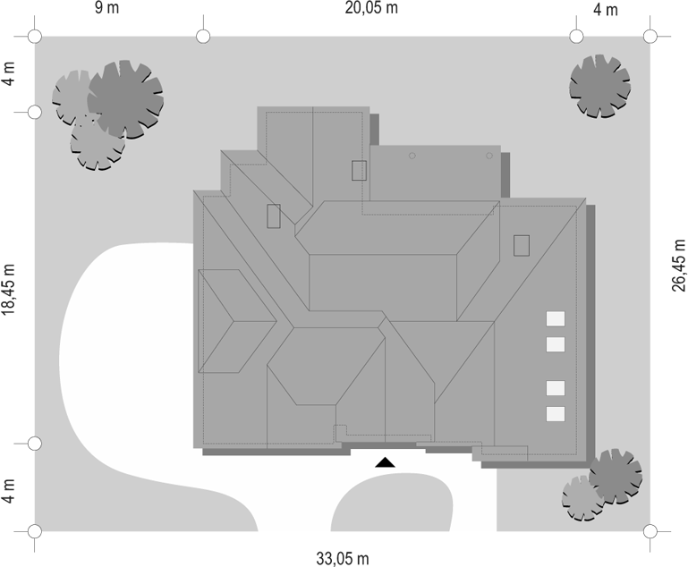 Budynek mieszkalny jednorodzinny, podpiwniczony z poddaszem użytkowym. W piwnicy zaprojektowano pomieszczenia gospodarcze i rekreacyjne. Na parterze umieszczono przestronny pokój dzienny z dostępem do jadalni i zamkniętą kuchnię. Przy wejściu znajduje się pokój – gabinet. Na poddaszu znajdują się trzy sypialnie z garderobami i łazienka. Ściany: 3-warstwowa - pustak ceramiczny + wełna mineralna, Stropy: żelbetowe, wylewane, Dach: blacha dachówkowa, kąt nachylenia 40°