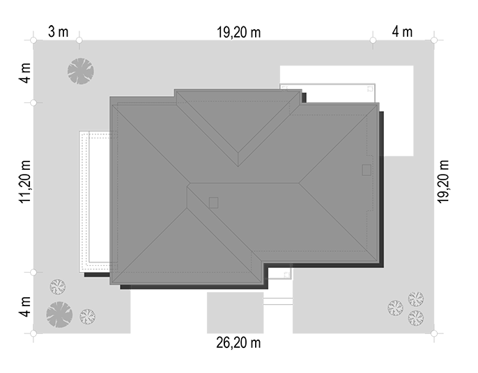 Jednorodzinny dom mieszkalny, parterowy z użytkowym poddaszem. Prosta klasyczna bryła. Przejrzysty układ funkcjonalny, z wyraźnym podziałem na część dzienną i gospodarczą zlokalizowaną na parterze oraz część nocną na poddaszu. Pełny program funkcjonalny dla 4-osobowej rodziny. Ściany: 2-warstwowe - pustak ceramiczny + styropian, Stropy: żelbetowe, wylewane, Dach: dachówka ceramiczna, kąt nachylenia 40°