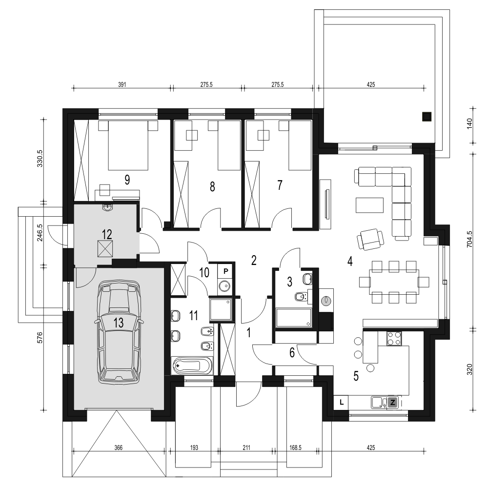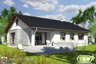 Projekt domu jednorodzinnego dla 4- osobowej rodziny.fundamenty: BETONOWE ściany zewnętrzne: PUSTAK CERAM. POROTHERM+STYROPIAN TERMO ORGANIKA ściany wewnętrzne: PUSTAK POROTHERM rodzaj stropu: TERIVA elewacje: TYNK STRUKTURALNY/OKŁ. KAMIENNA/KLINKIEROWA pokrycie dachu: DACHÓWKA CEM. lub CER.