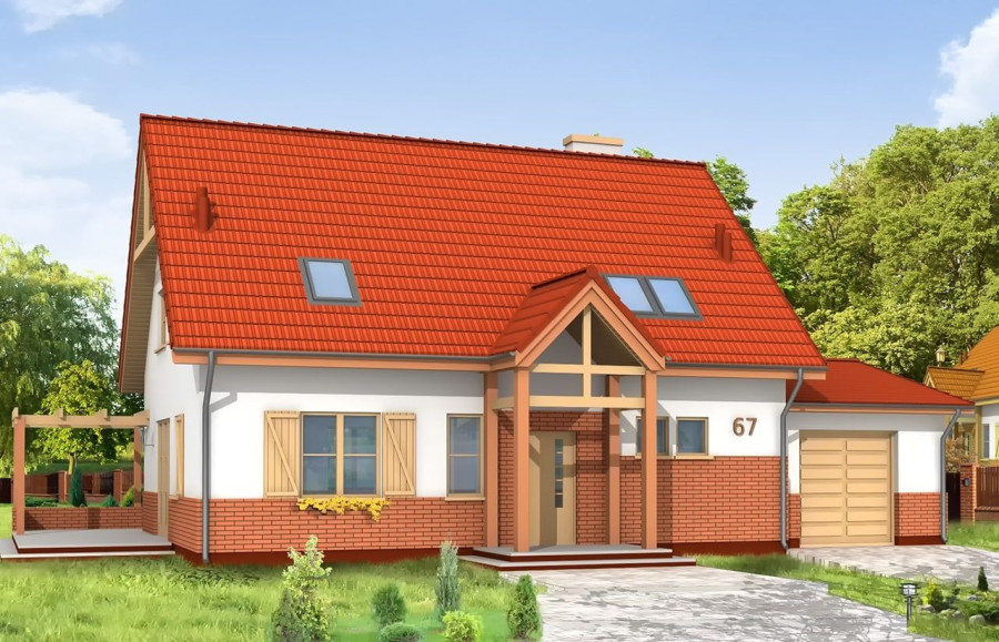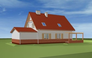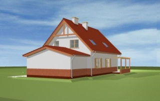 Projekt domu Leśny Zakątek to parterowy dom z poddaszem użytkowym i garażem przeznaczony dla 4- 6-osobowej rodziny. Budynek można posadowić na działce z niekorzystnym nasłonecznieniem. Architektura projektu nawiązuje do prostych, tradycyjnych form i detali, w nowoczesnym ujęciu. Dzięki użyciu naturalnych materiałów: cegły, drewna, dachówki ceramicznej - dom doskonale komponuje się z otoczeniem. Wnętrze domu Leśny Zakątek ma układ półotwarty - pokój dzienny przestrzennie łączy się z holem oraz z tarasem. W dużej kuchni zaprojektowano stół do szybkich posiłków. Na parterze znajdują się ponadto: pokój (gabinet lub sypialnia), pomieszczenie gospodarcze, wc z natryskiem i garaż. Na poddaszu umieszczono trzy wygodne sypialnie, łazienkę i garderobę. Projekt domu Leśny Zakątek dostępny jest również w wersji odbicia lustrzanego, oraz wersji powiększonej, ze zmienionym układem pomieszczeń (Projekt domu Leśny Zakątek 2).